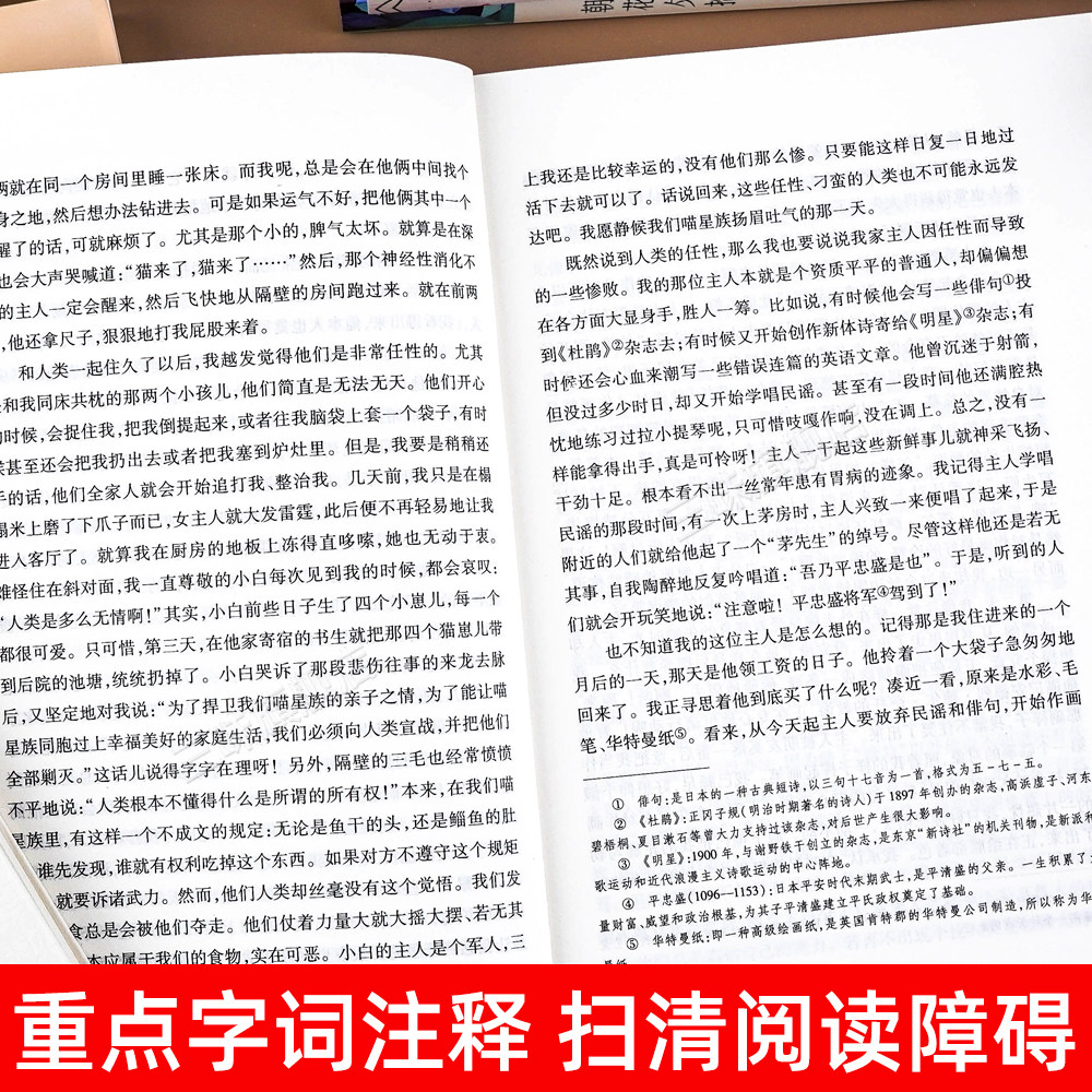 📚 我是猫 夏目漱石著 正版原著全译本中文版完整版无删减带注释 九年级下册阅读课外书名著课外阅读书籍 世界经典文学名著外国小说