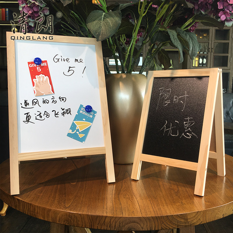 📚 清朗 柜台小黑板简约木框支架式吧台小黑板A字双面小白板广告板菜促销板创意店铺桌面小黑板宣传板家用留言板