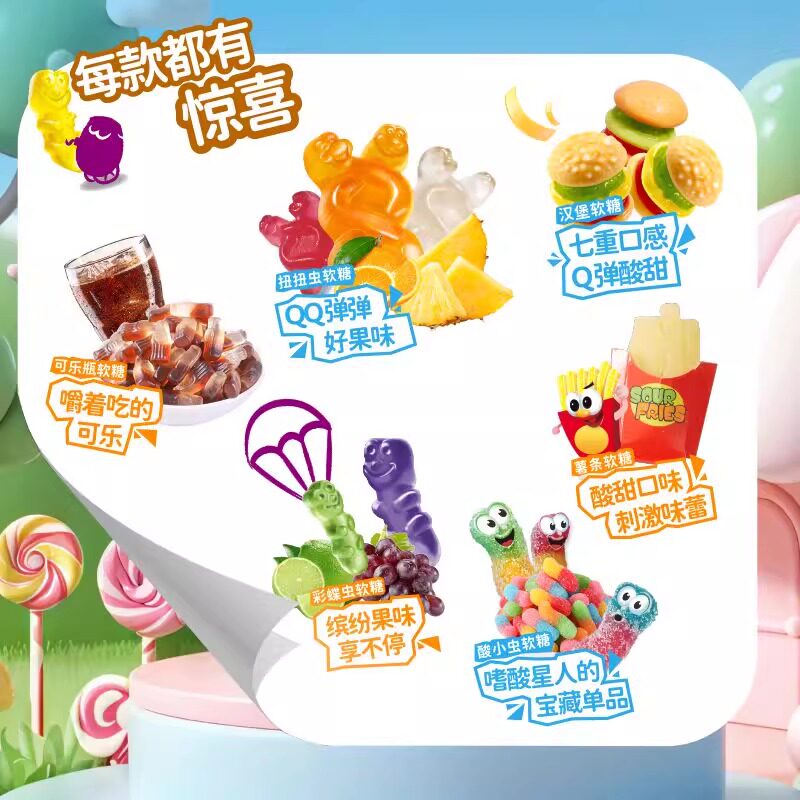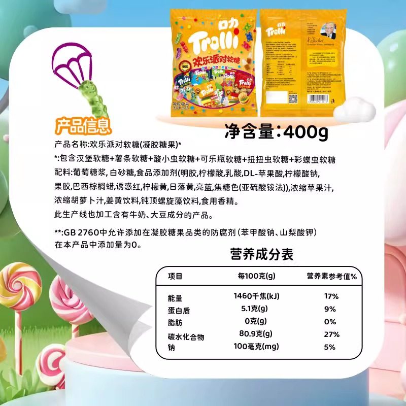 📚 德国trolli口力橡皮糖欢乐派对400g袋装汉堡包散装混搭软糖果小吃