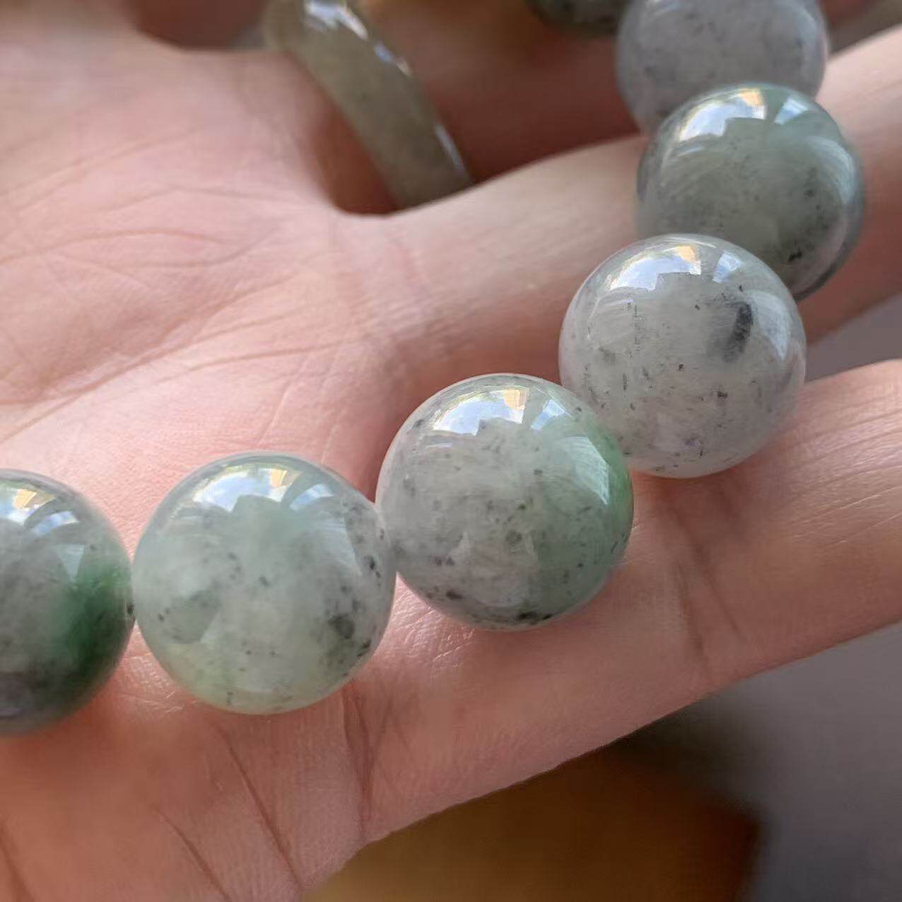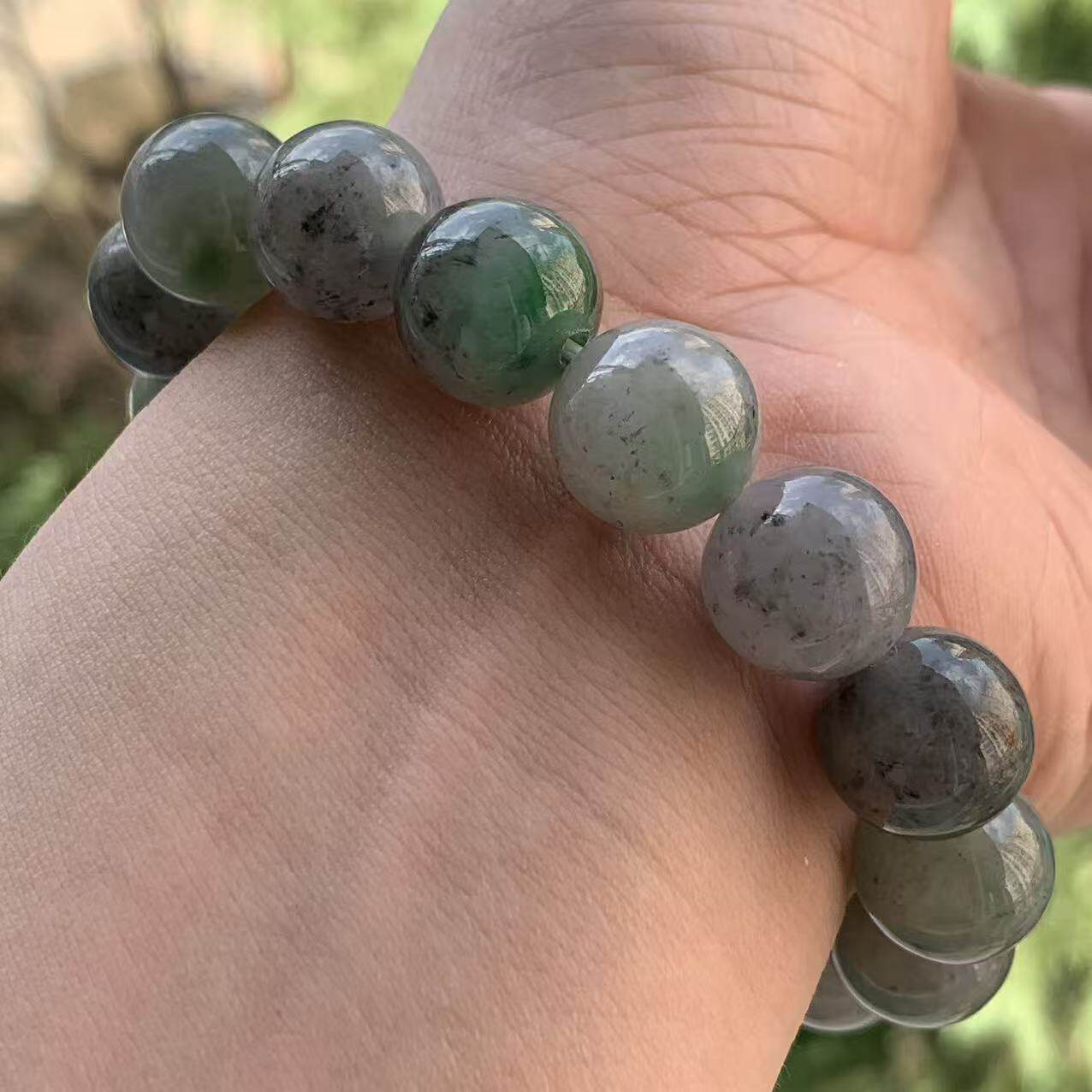 📚 缅甸玉天然A货翡翠手串老坑料绿色飘花乌鸡翡翠圆珠手串卡13.2mm