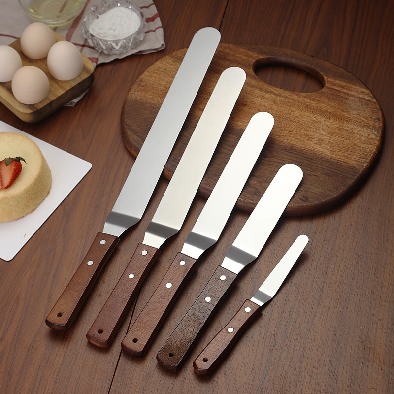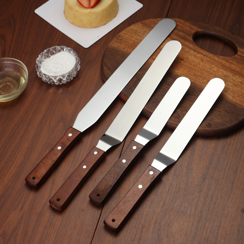 📚 烘焙工具木柄曲柄不锈钢奶油抹刀蛋糕刮平刀吻刀裱花刀6寸8寸10寸