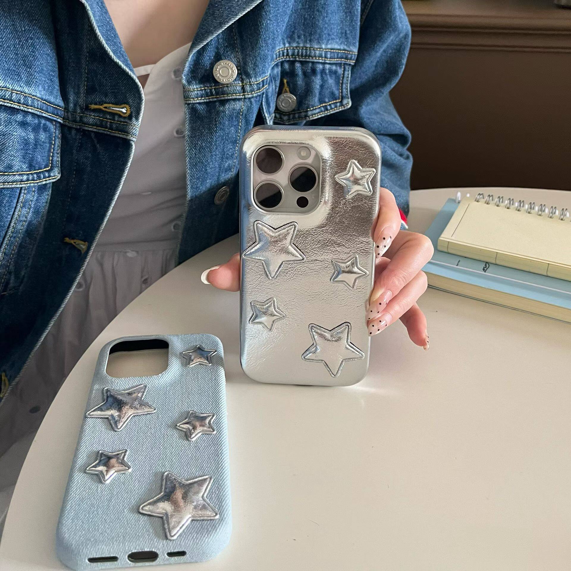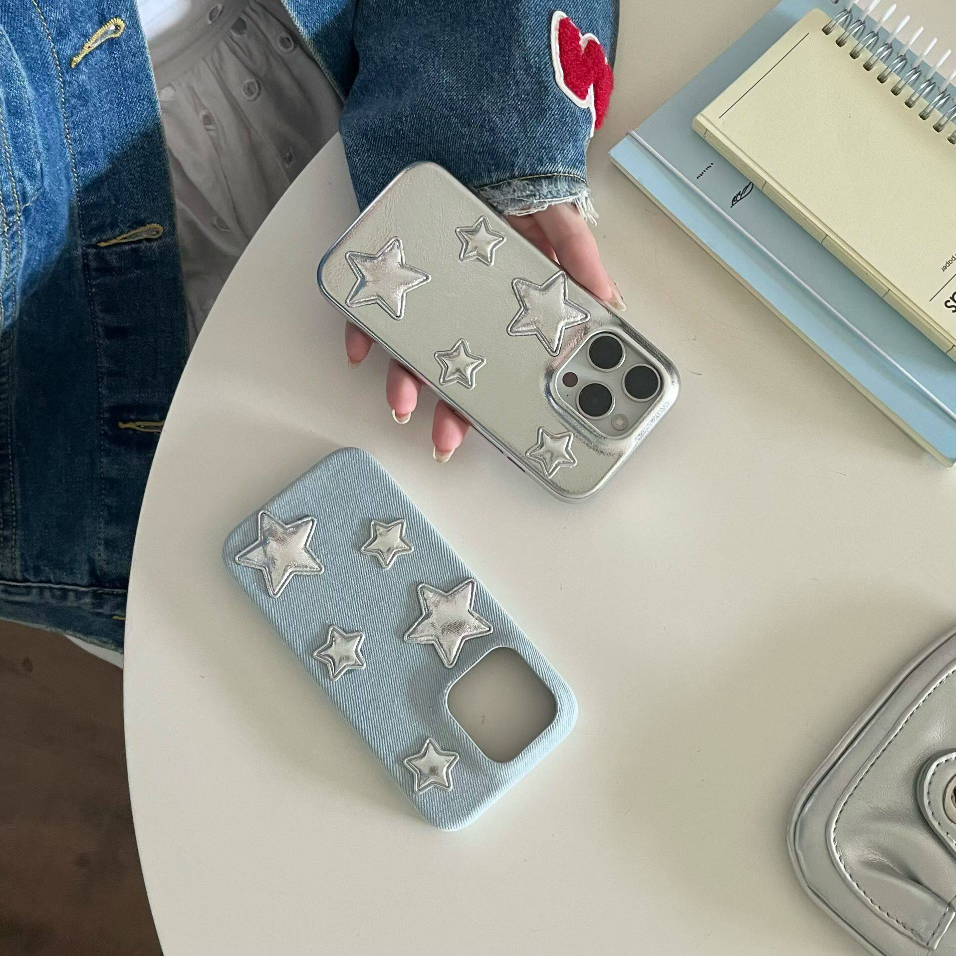 📚 ins风皮质立体星星适用iphone17promax苹果16手机壳15pm新款14pro少女心17网红13pro全包防摔韩系高级感创意