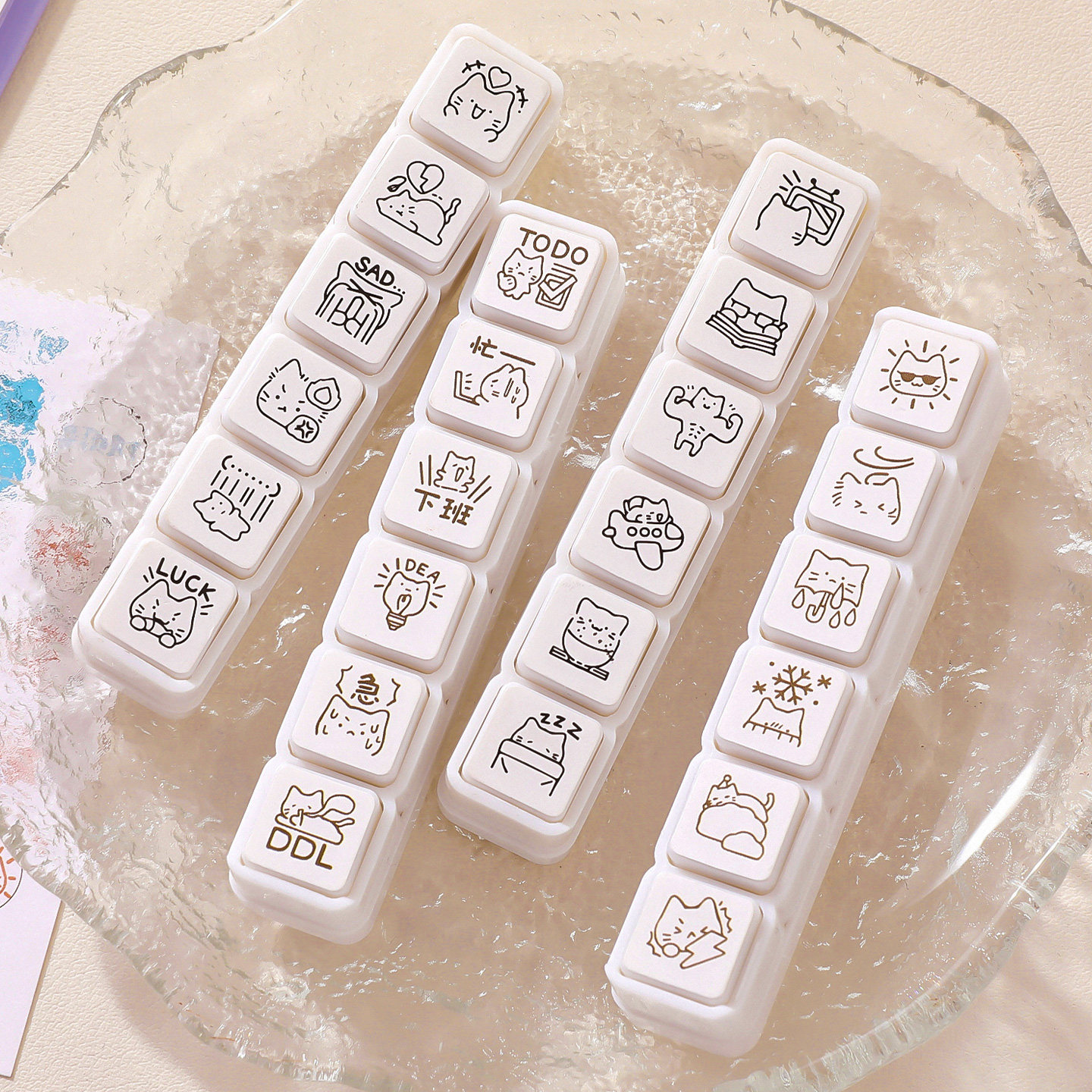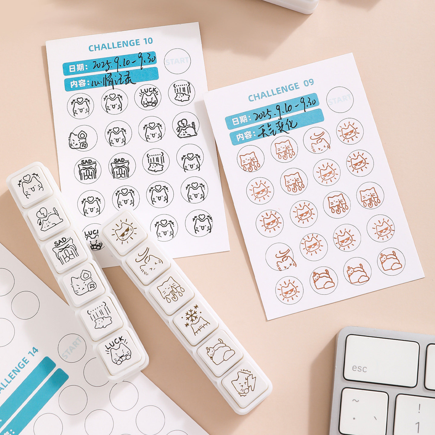 📚 六联可爱小猫印章天气心情假期按压式光敏印章日常手帐装饰图章