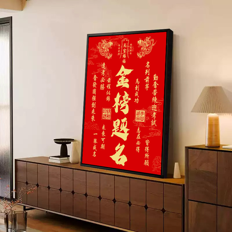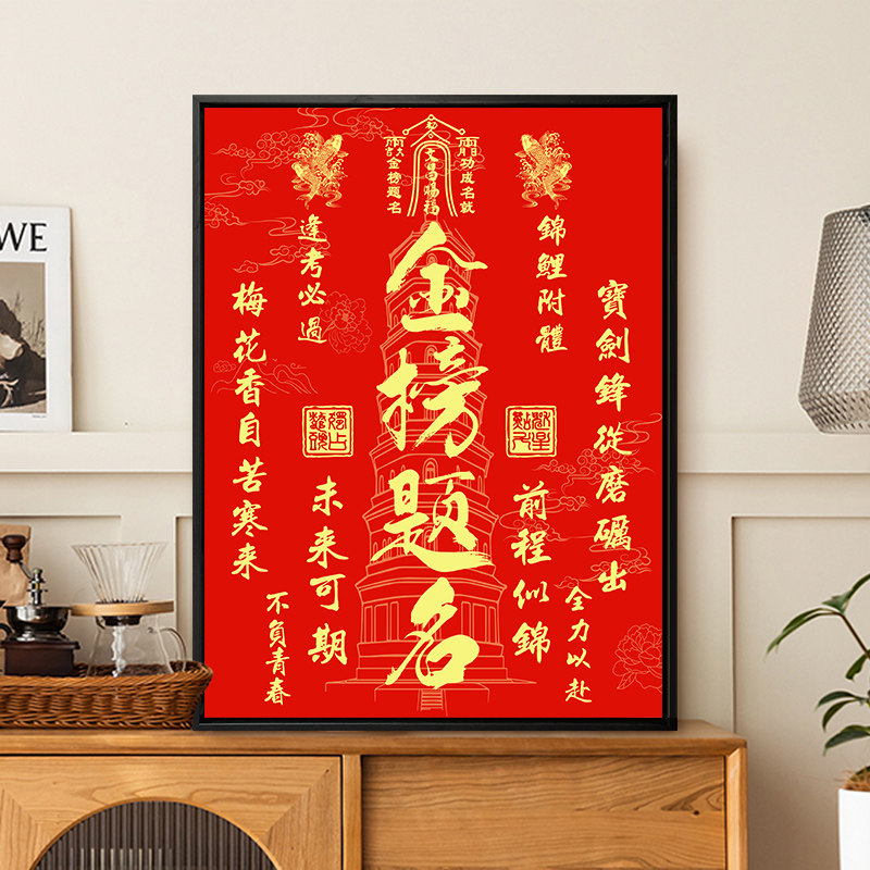 📚 中高考试金榜题名一举夺魁挂画礼物逢考必过鱼跃龙门好寓意装饰画