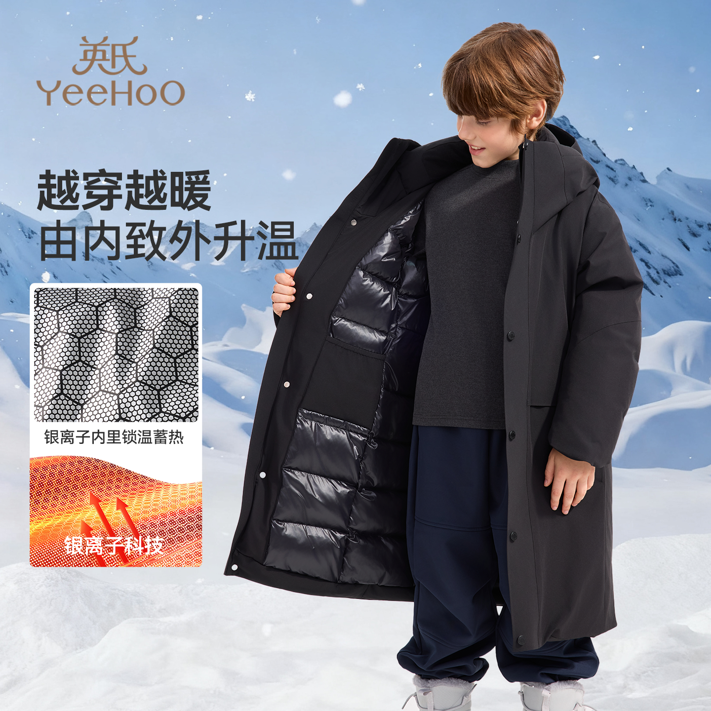 📚 【三防长款鹅绒】英氏儿童羽绒服冬季男女童长款户外极寒冲锋外套