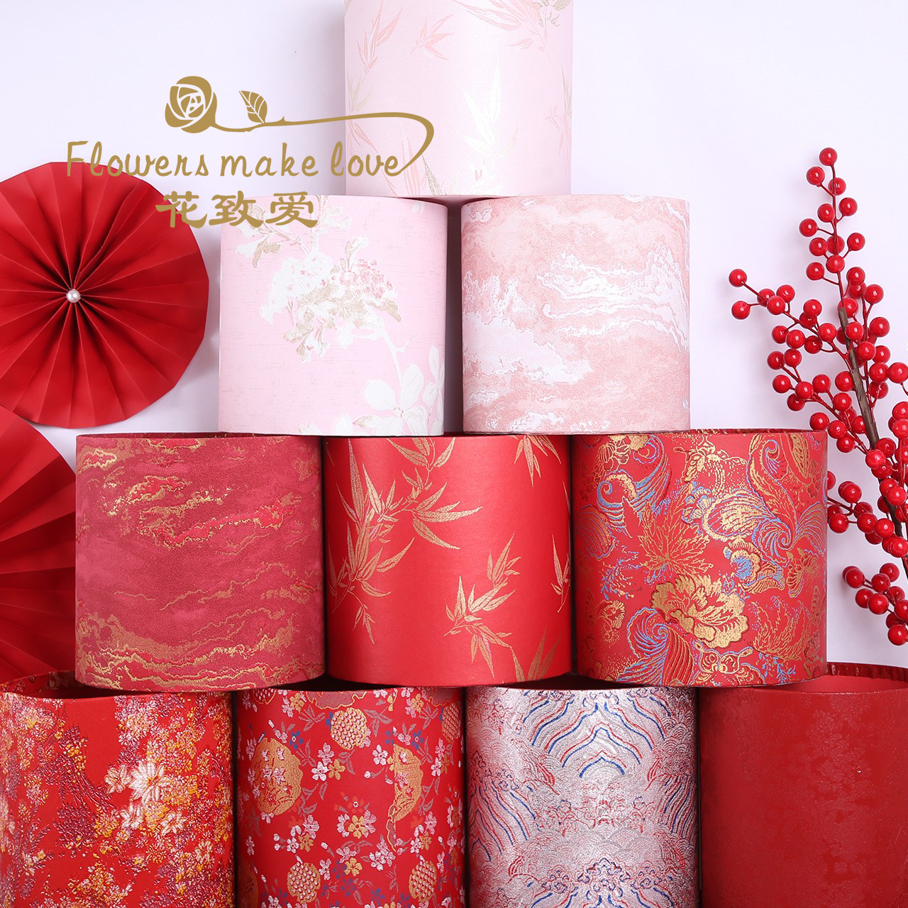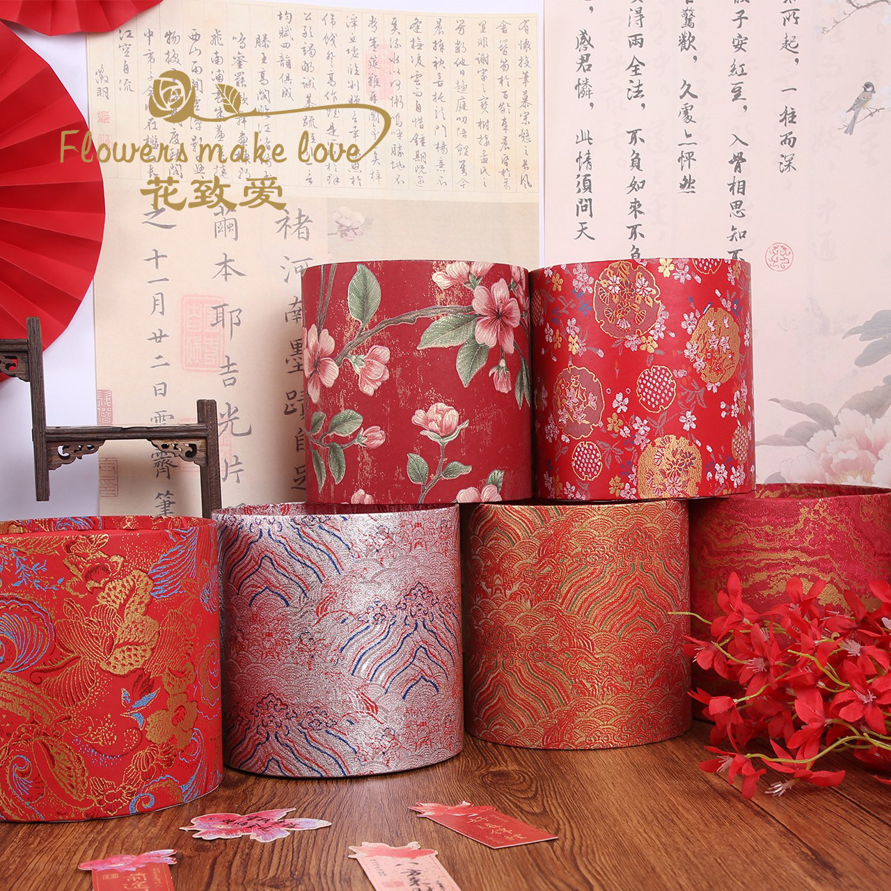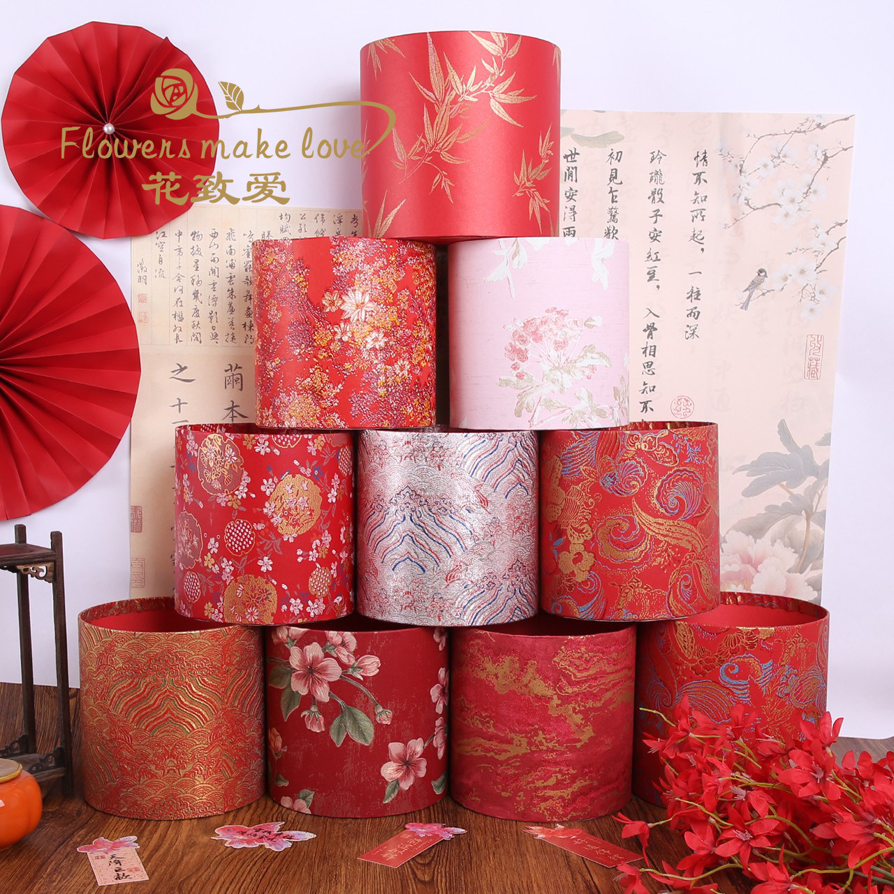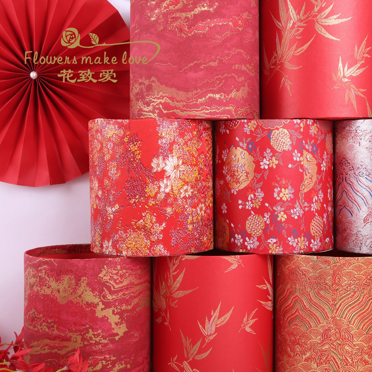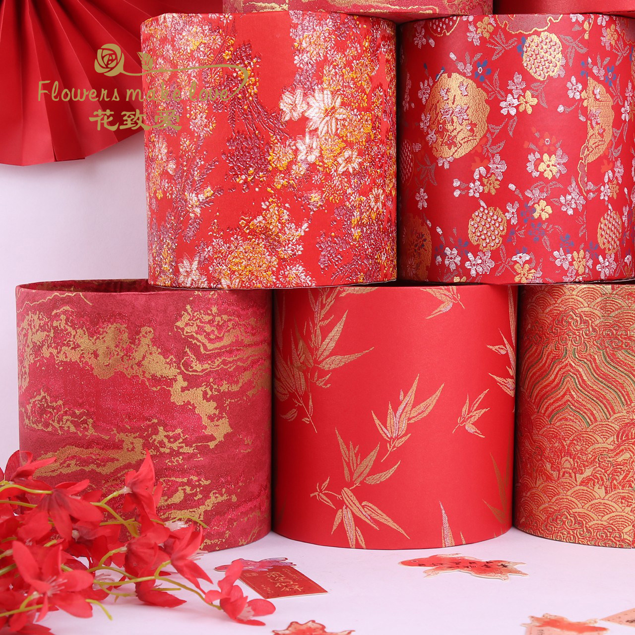 📚 新年喜庆年宵花桶锦绣繁华福桶抱抱桶鲜花束包装盒结婚乔迁插花桶