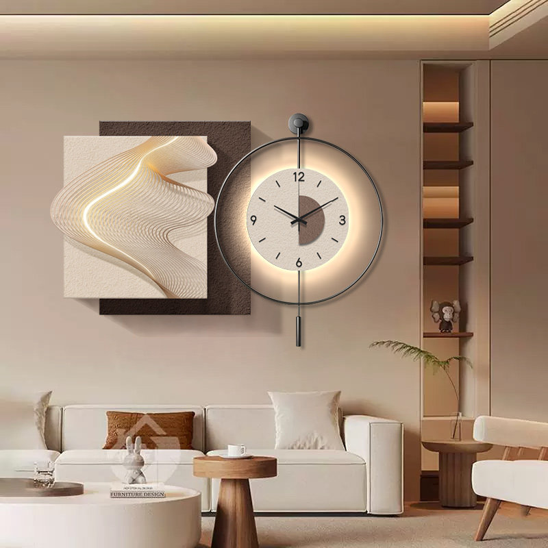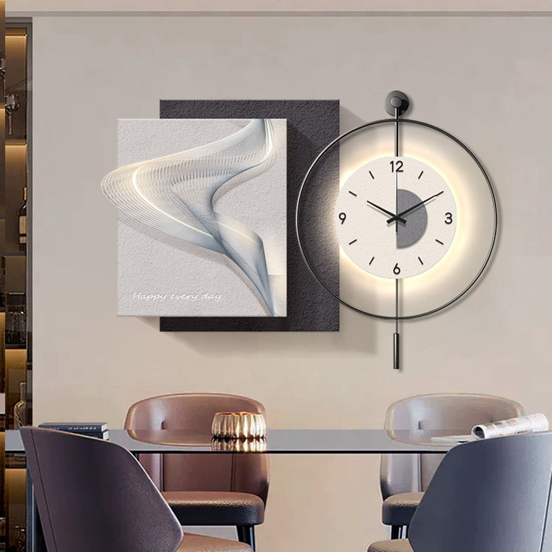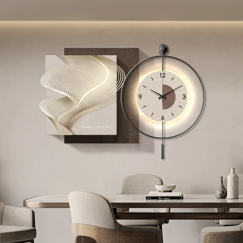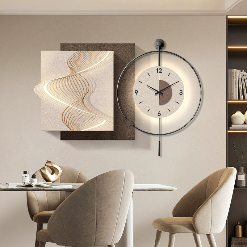 📚 现代轻奢餐厅装饰画高档侘寂风抽象组合挂钟客厅背景墙简约钟表画