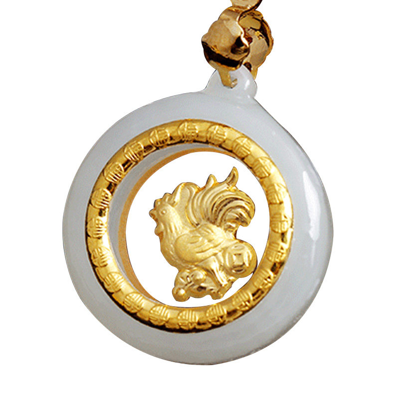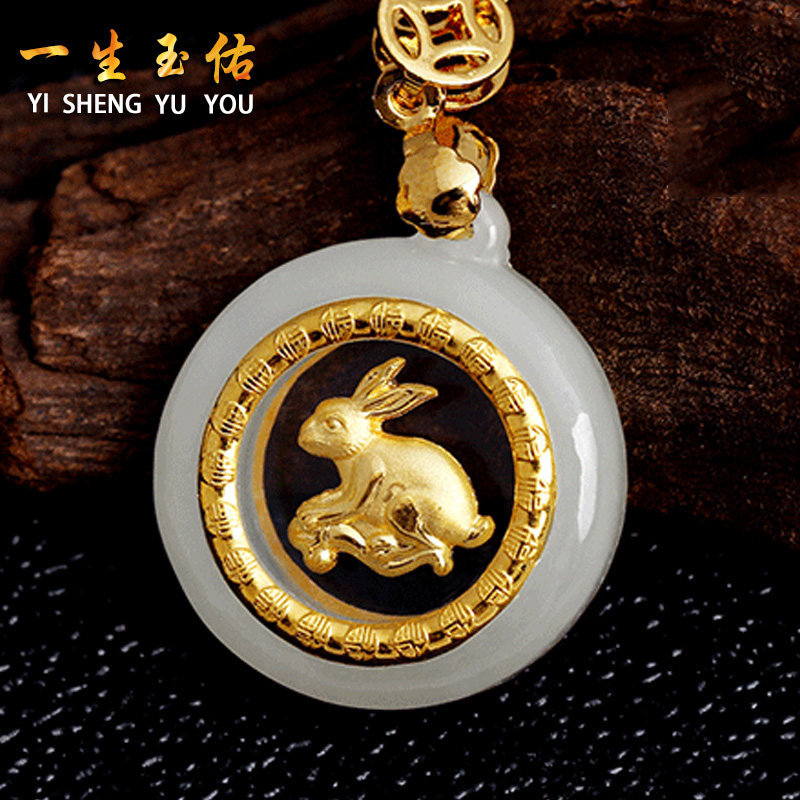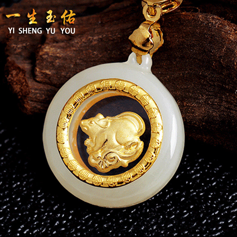 📚 和田玉十二生肖吊坠黄金镶玉项链挂件守护神本命年属相玉坠鼠马羊