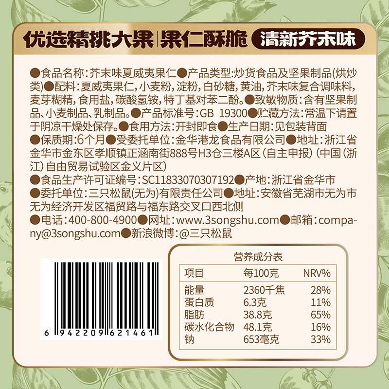 📚 【三只松鼠_芥末味夏威夷果仁25gx10袋】坚果零食特产大颗粒脆皮