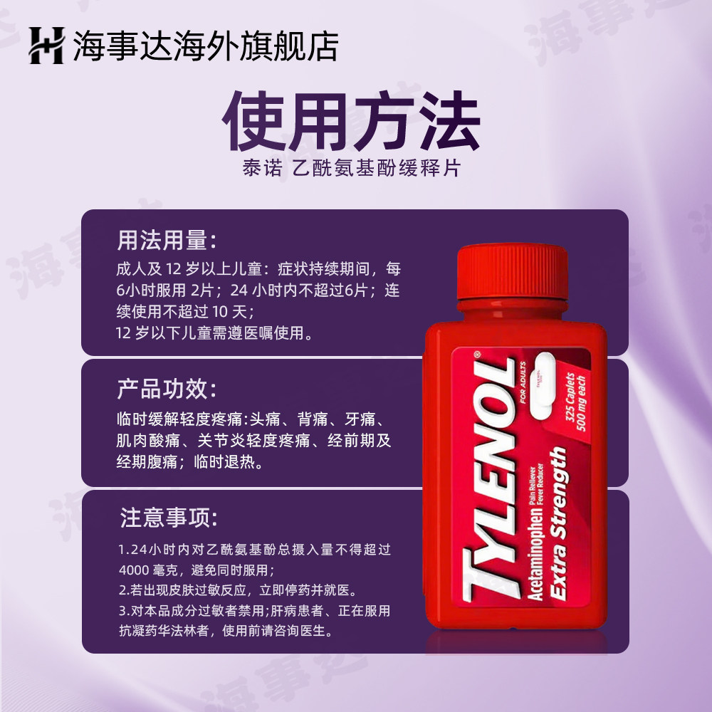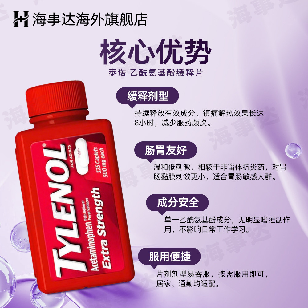 📚 美国原装Tylenol 泰诺 乙酰氨基酚缓释片止痛药500mg 325粒