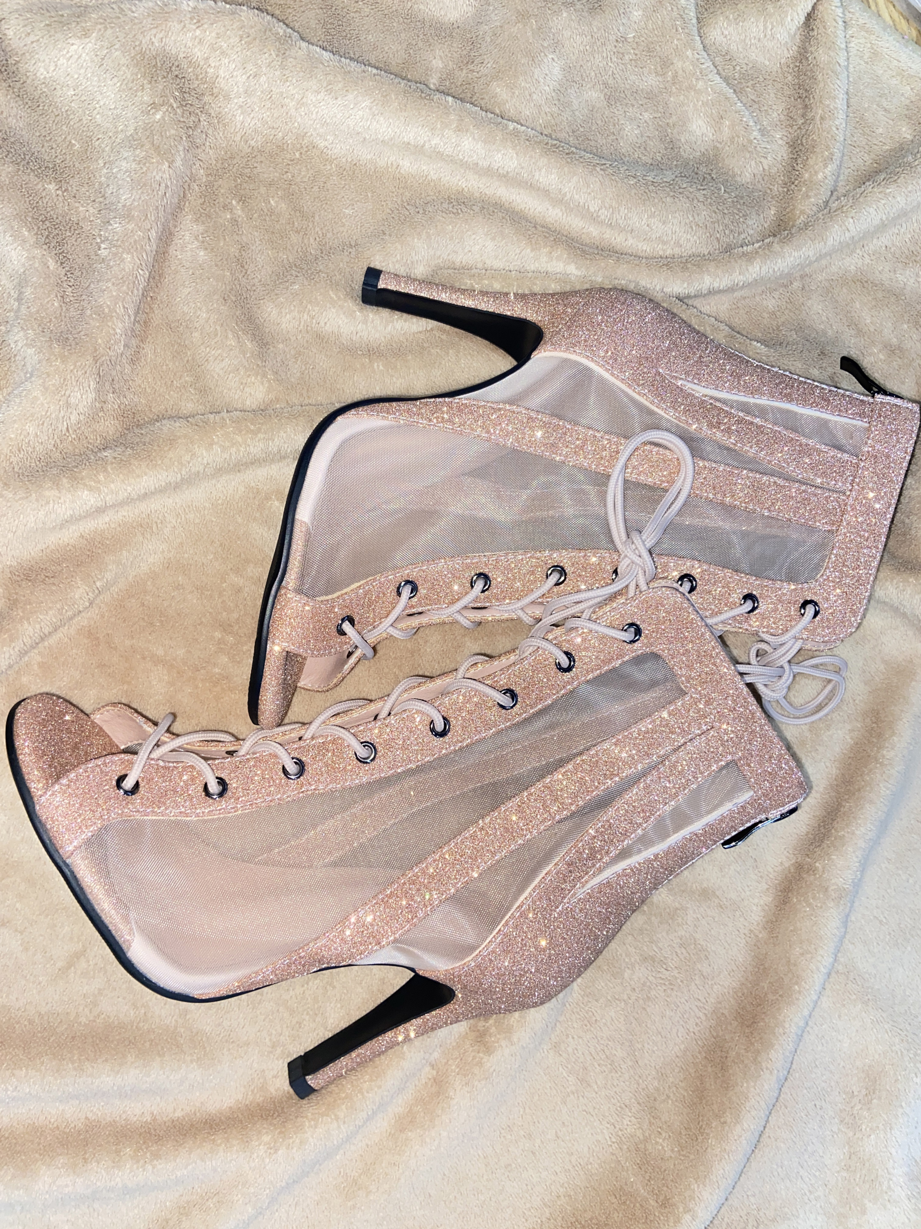 📚 格丽特闪粉网纱爵士舞鱼嘴高跟鞋HEELS专用舞鞋短靴舞蹈鞋跳舞女
