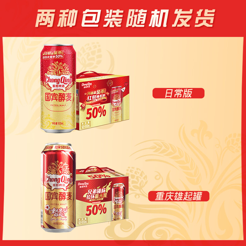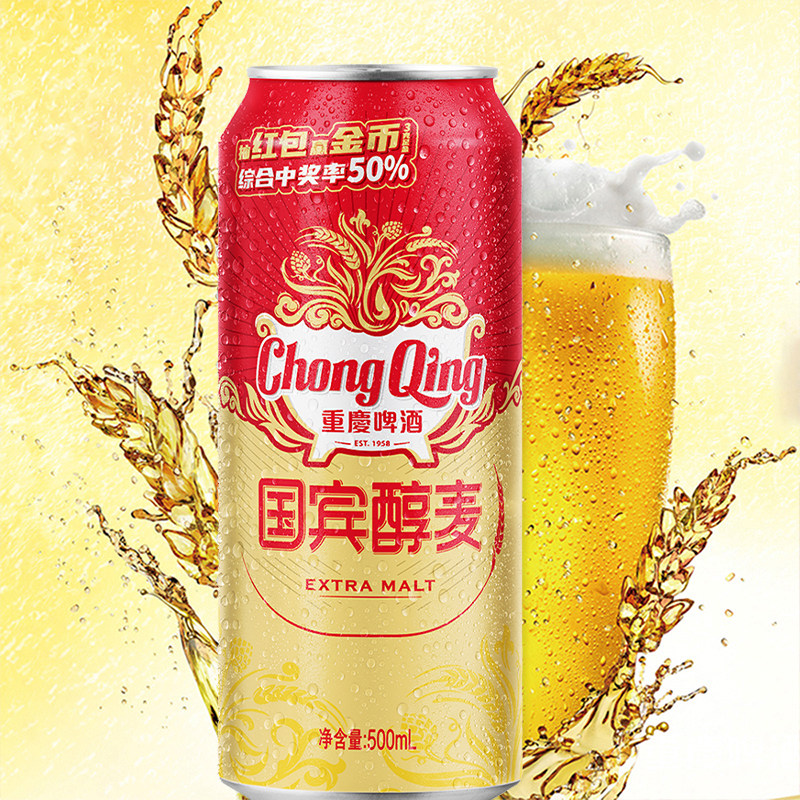 📚 【向余望限定罐】重庆啤酒国宾醇麦500ml*12罐整箱装麦香浓郁