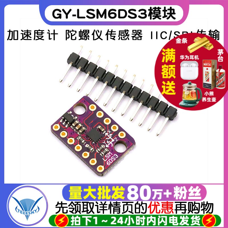78¥ HU071 rd9GU9Hugxk¥ https://m.tb.cn/h.7Gd9OvX GY-LSM6DS3模块 加速度计 倾斜度角度 陀螺仪传感器IIC/SPI传输 --------------------- 【原售价】13.3元 【现售价】13.3元。