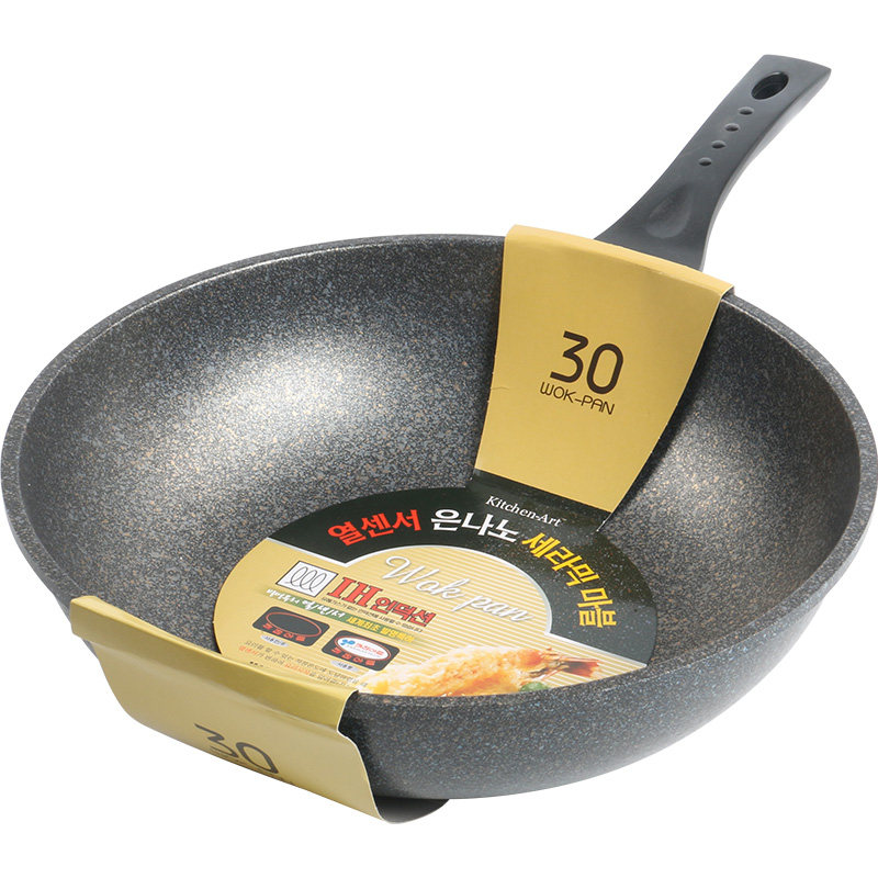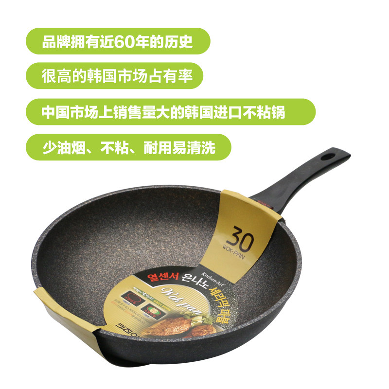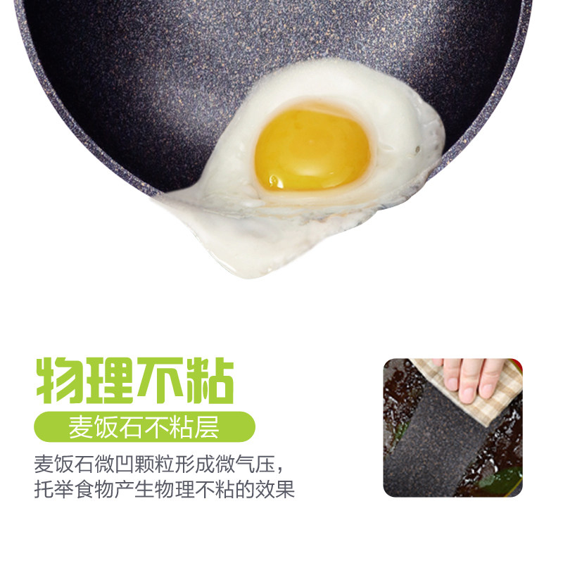 📚 韩国麦饭石不粘锅炒锅无油烟平底炒勺26cm家用小炒锅炒菜大勺锅具