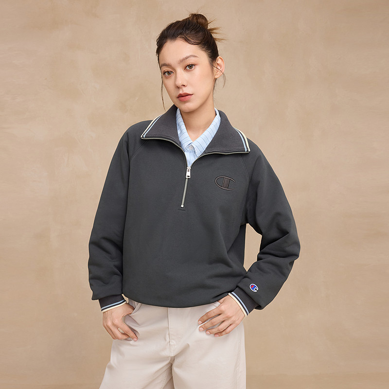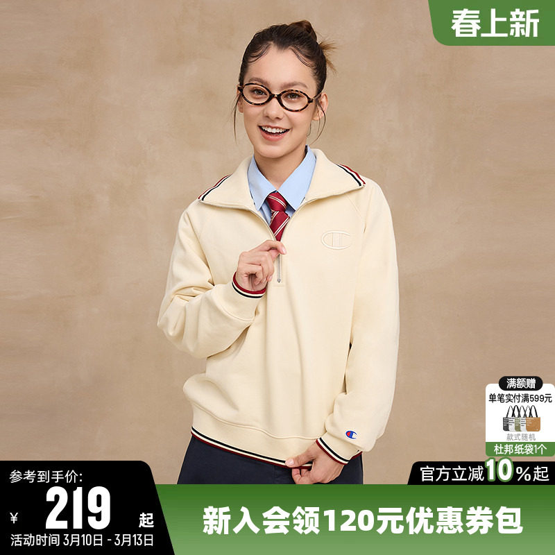 📚 Champion冠军翻领卫衣女2025秋季新款半拉链休闲复古海军领上衣潮