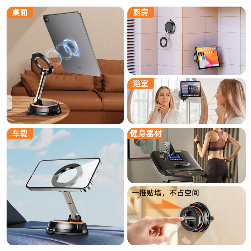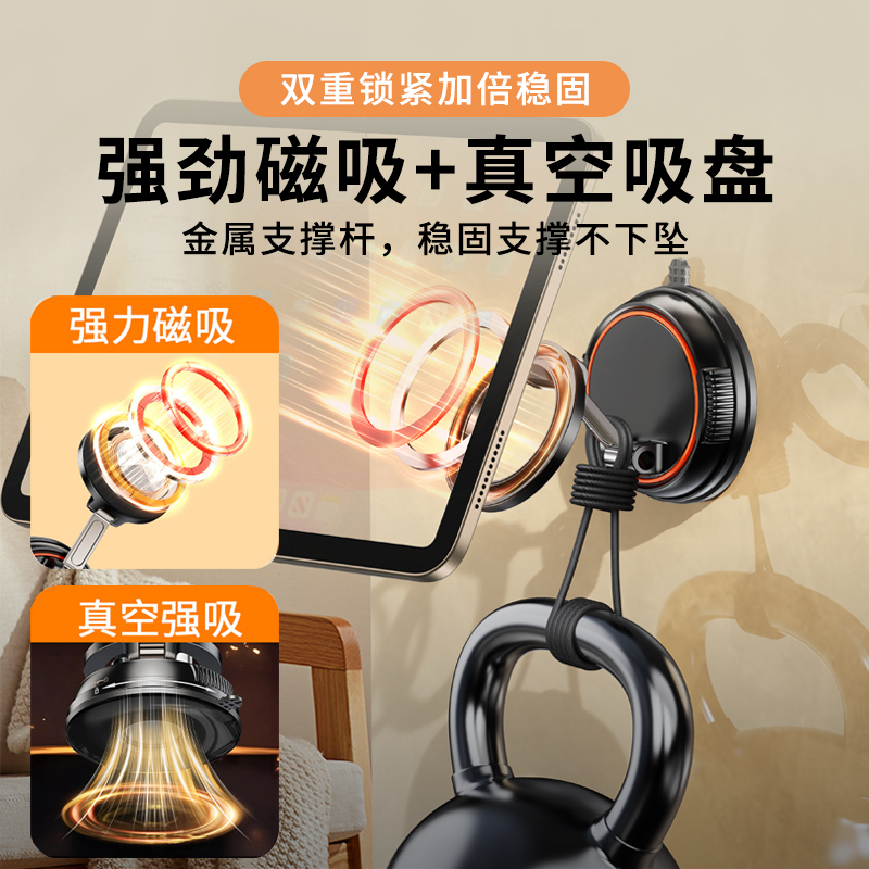 📚 吸盘式平板ipad墙壁磁吸支架可旋转手机固定架子真空吸附镜子玻璃贴墙卫生间壁挂浴室厕所墙面厨房挂墙上床头