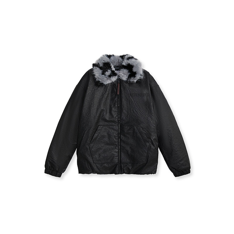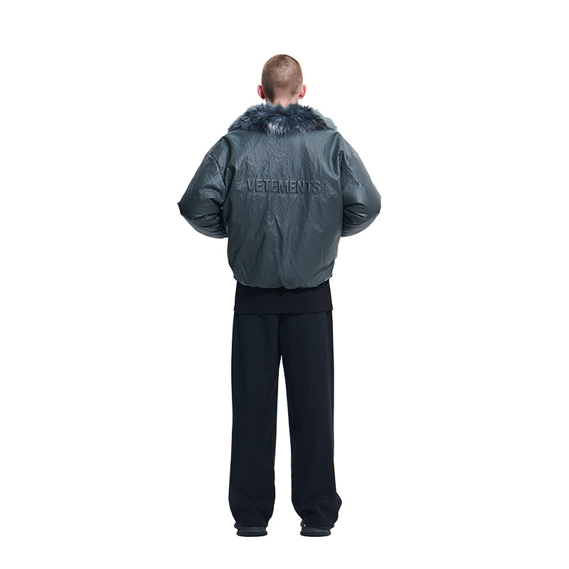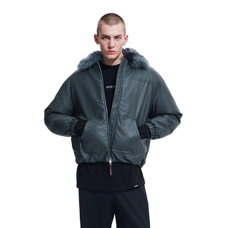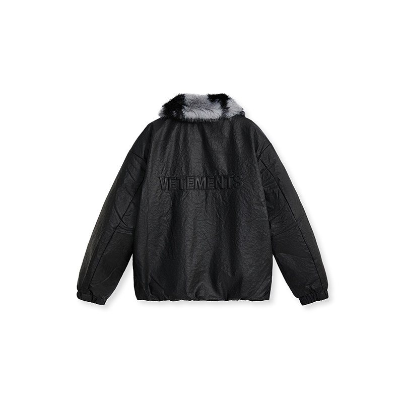 📚 VETEMENTS男女时尚立体钢印石头纹PU皮90%白鸭绒羽绒服35710013