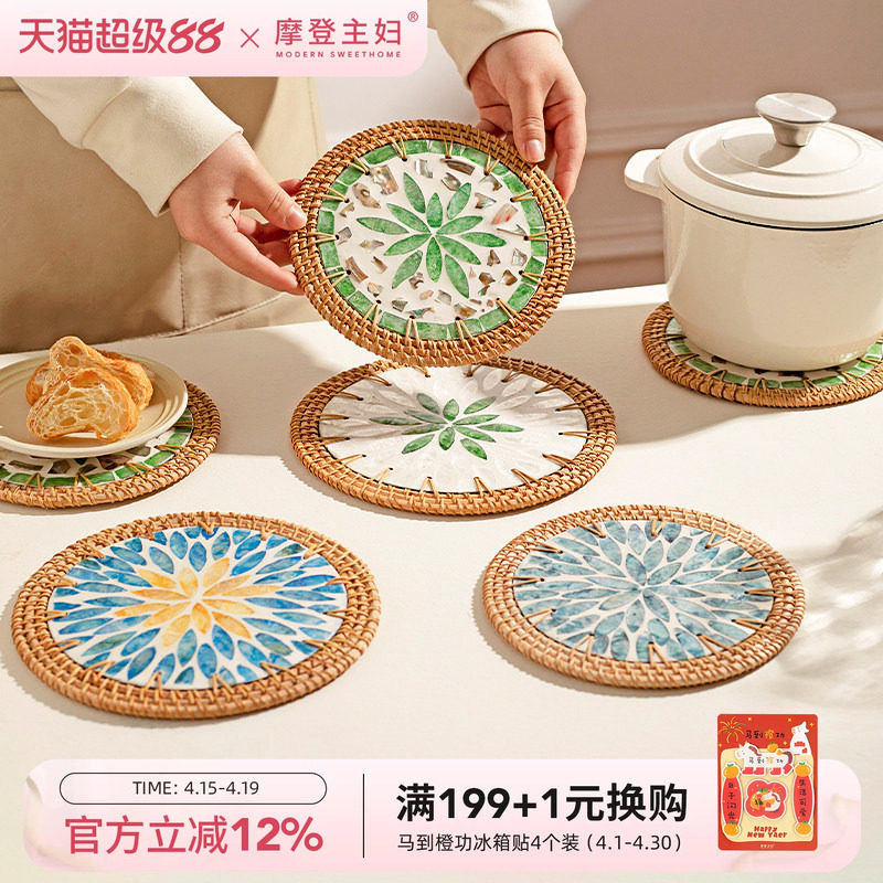 📚 摩登主妇贝壳隔热垫餐桌防烫垫藤编砂锅垫茶杯垫耐高温碗垫餐盘垫