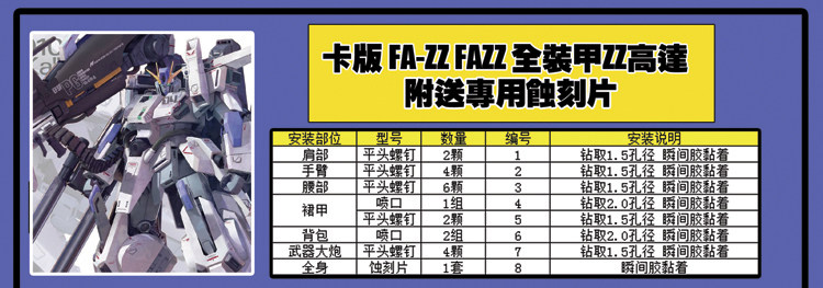 📚 包邮热销HD高达模型MG1/100KA卡版FAZZ全装甲金属改件喷口蚀刻片