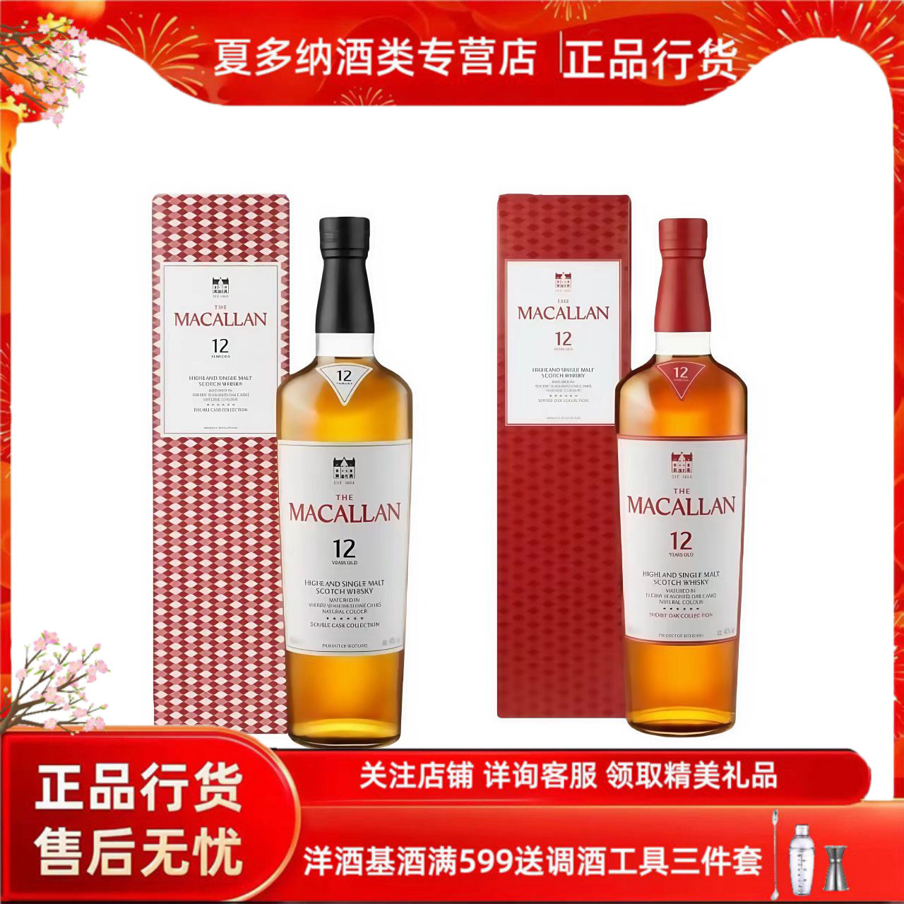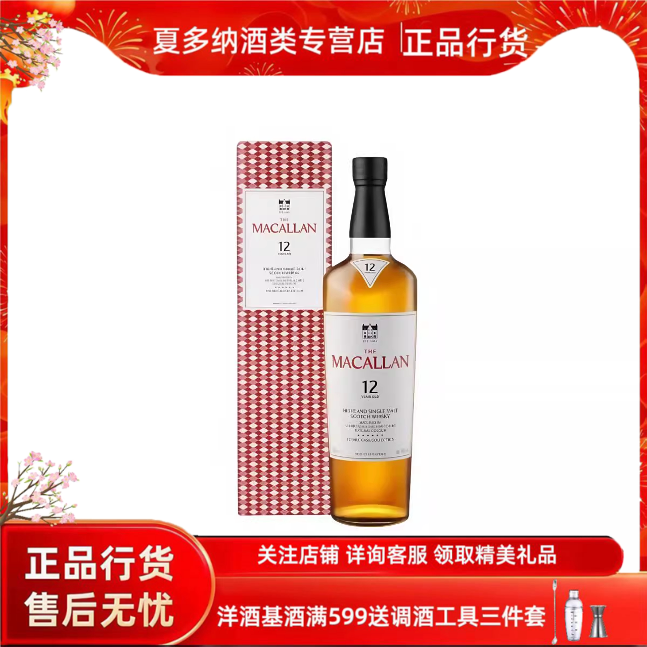 📚 正品行货进口洋酒麦卡伦12年蓝钻雪莉桶苏格兰单一麦芽威士忌