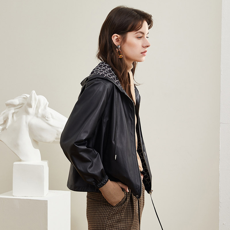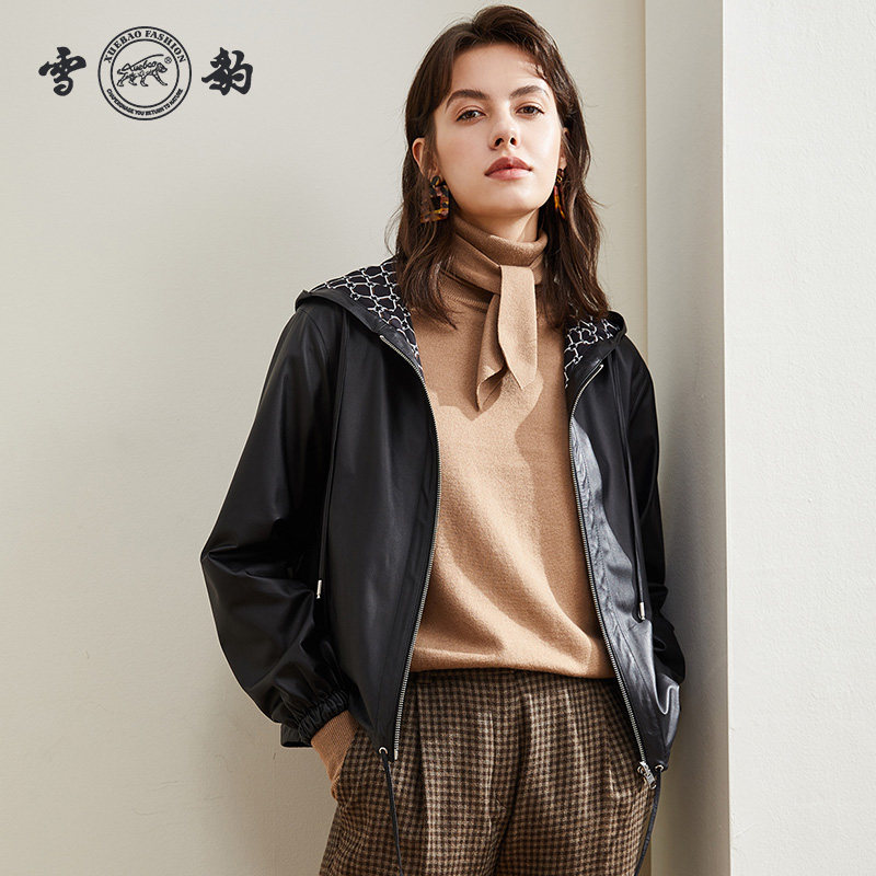 📚 雪豹两面穿轻薄连帽短款真皮皮衣女士外套时尚潮流韩版真皮夹克