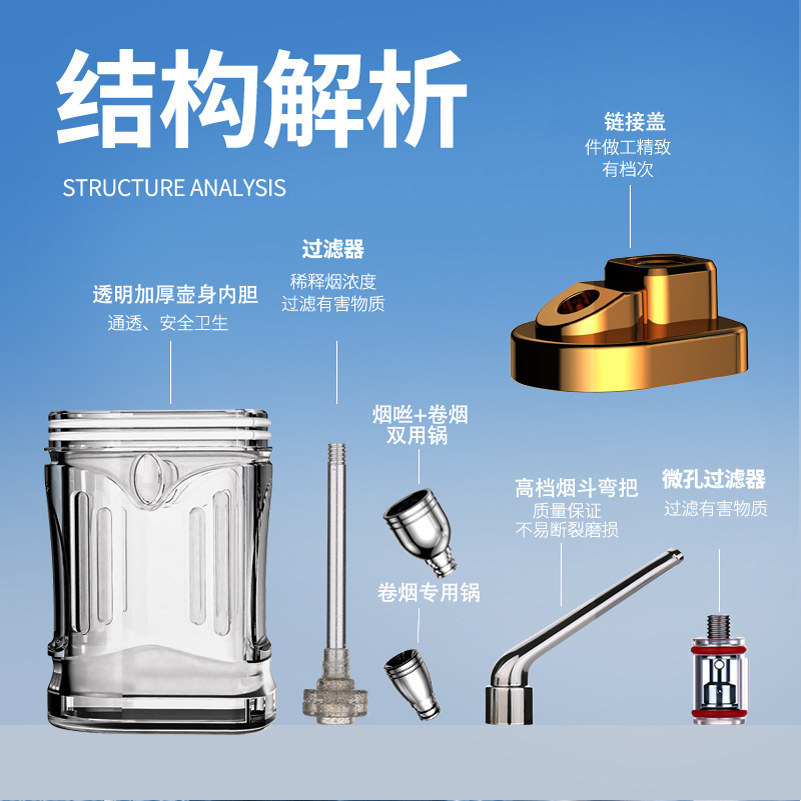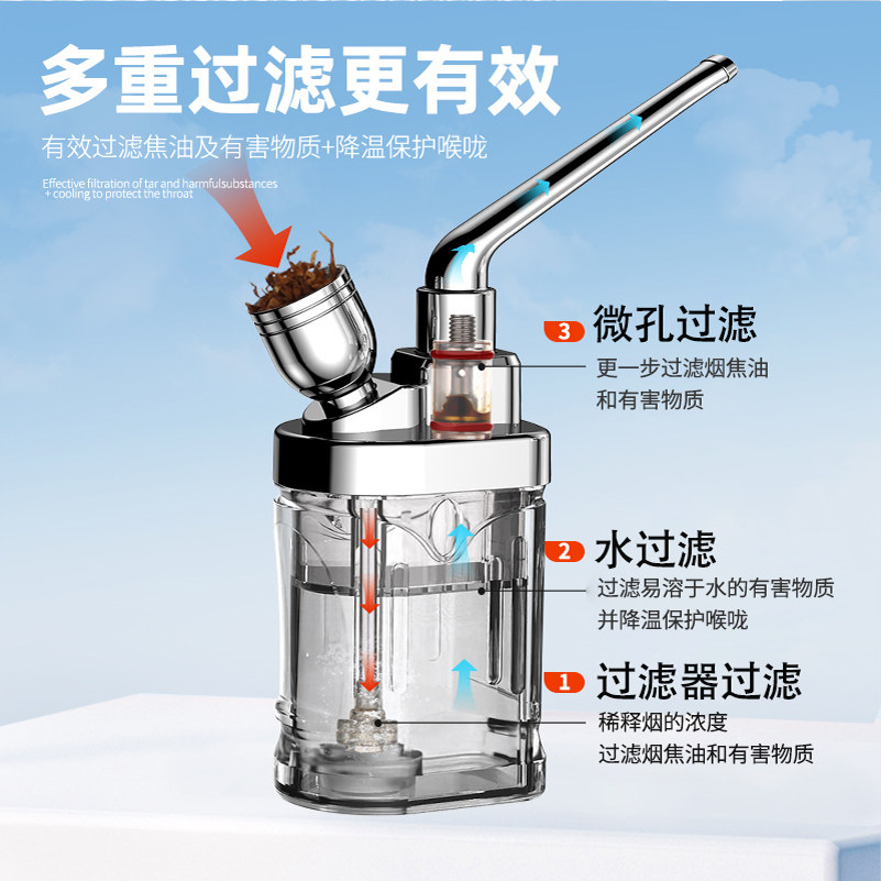 📚 水烟壶双重过滤器全套水烟斗男士烟嘴四用水烟筒烟袋锅烟丝草专用