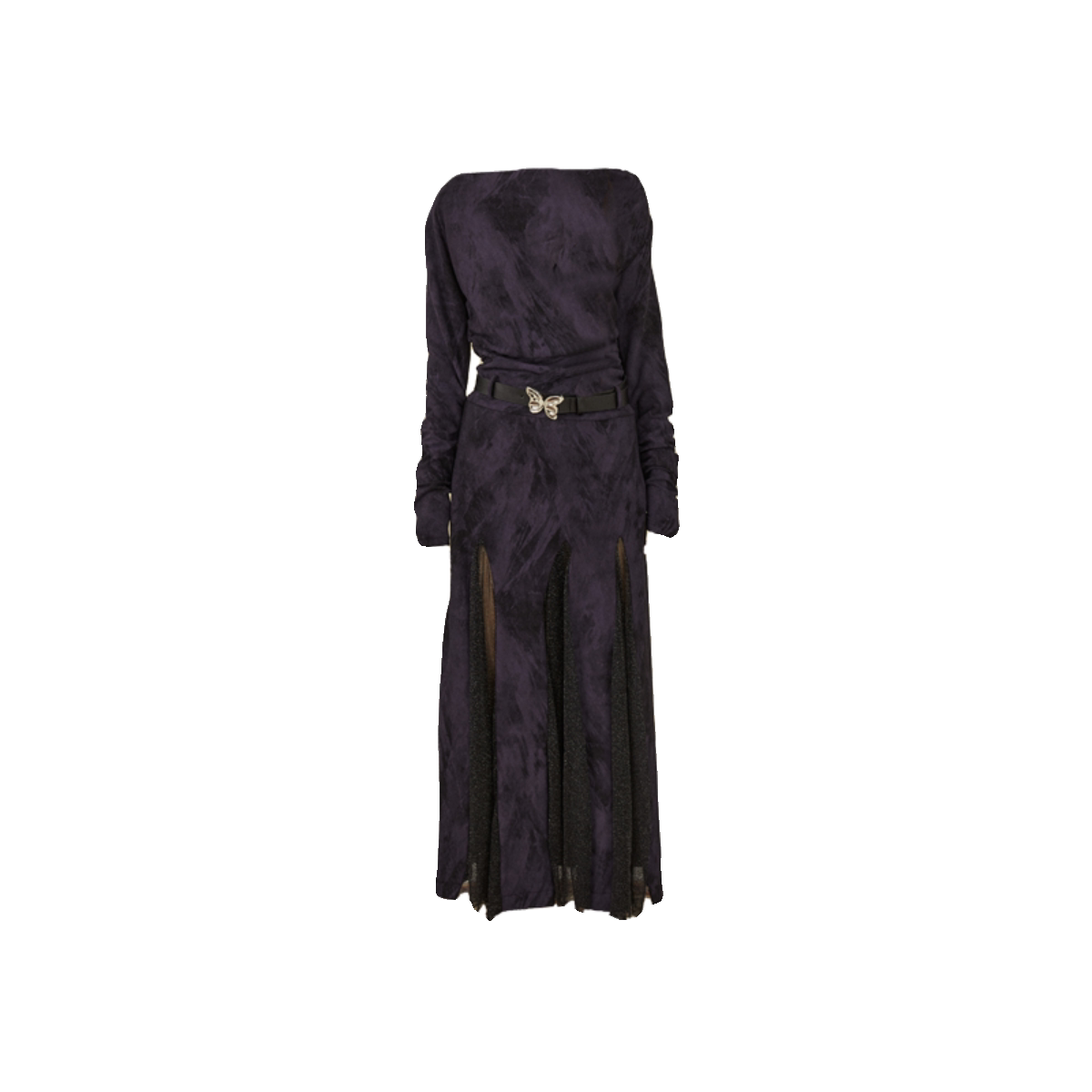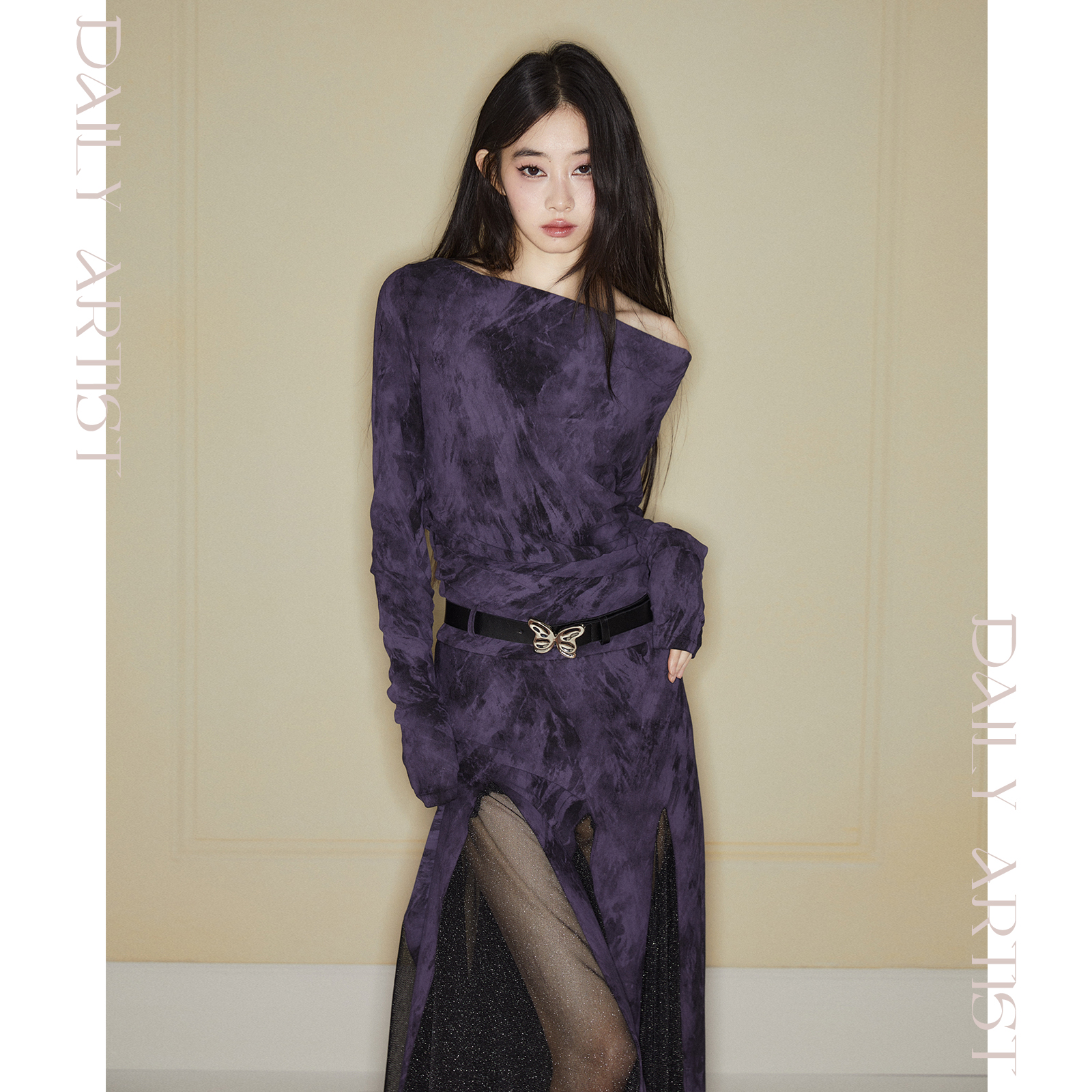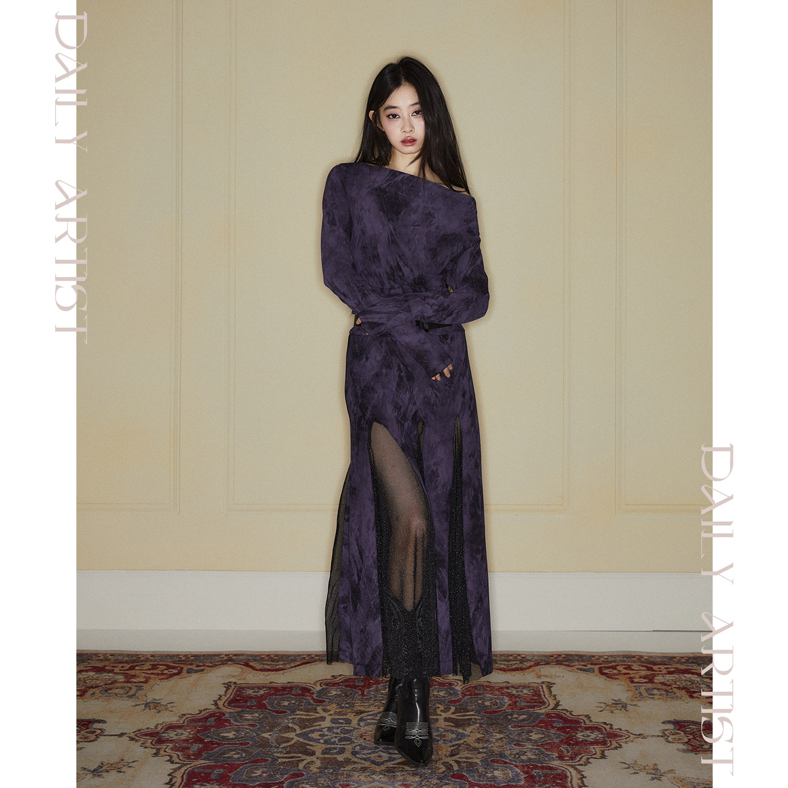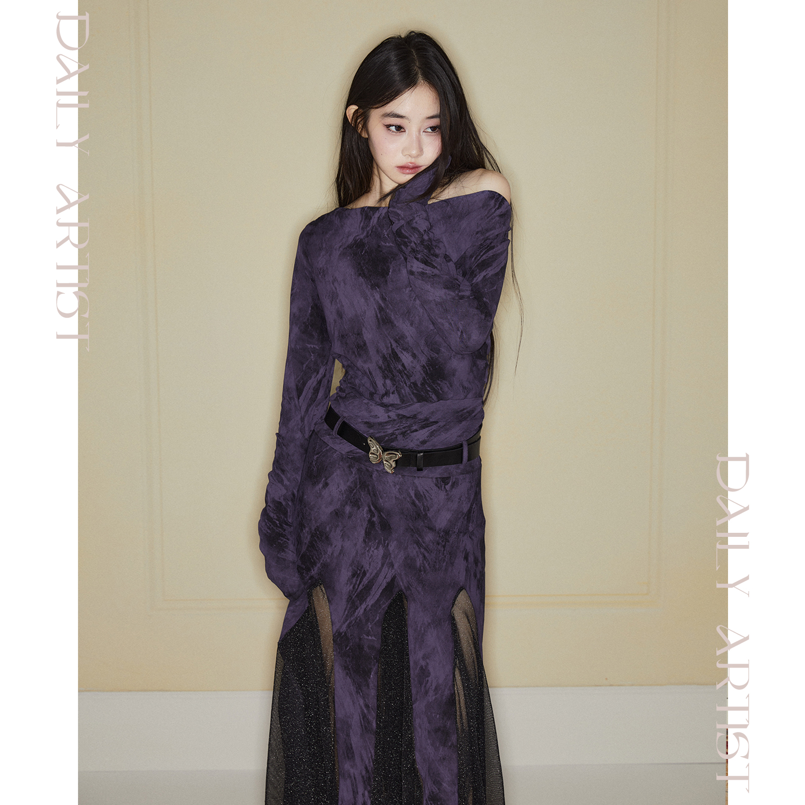 📚 【1110 20:00】今日艺术家原创深紫色拼接黑纱荡领连衣裙