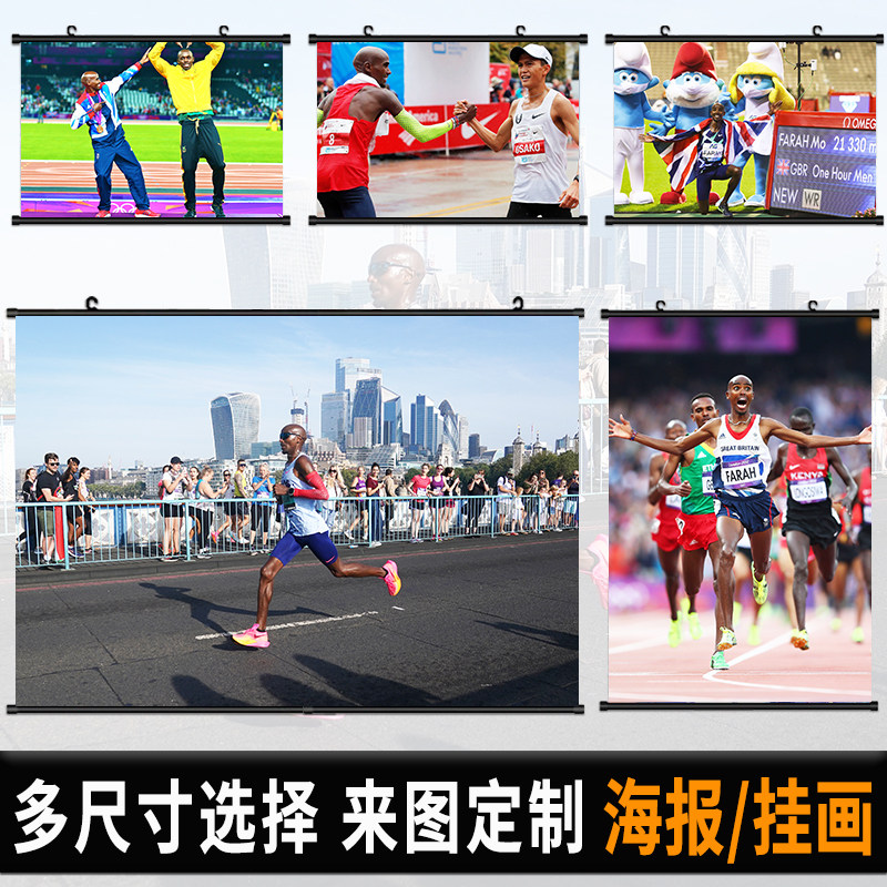 📚 法拉赫海报挂画马拉松励志房间自粘壁纸墙上挂布装饰画卷轴定制