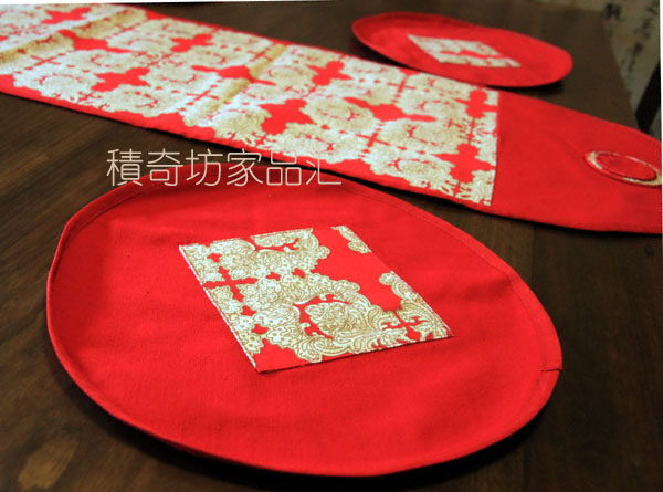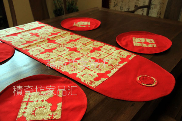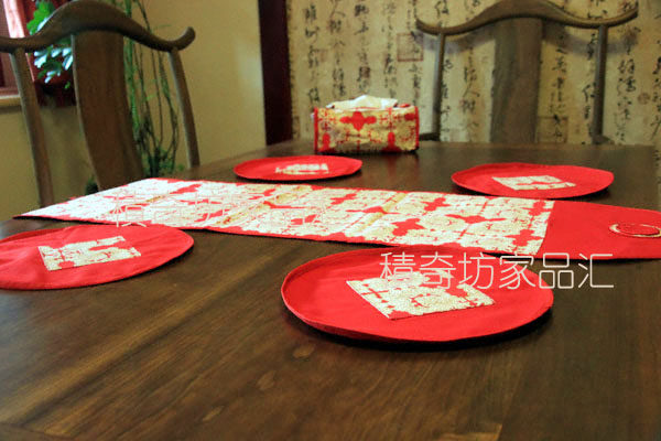 📚 热卖红色喜庆桌布中式装修电视柜茶几布垫新年礼品印花棉布长桌旗