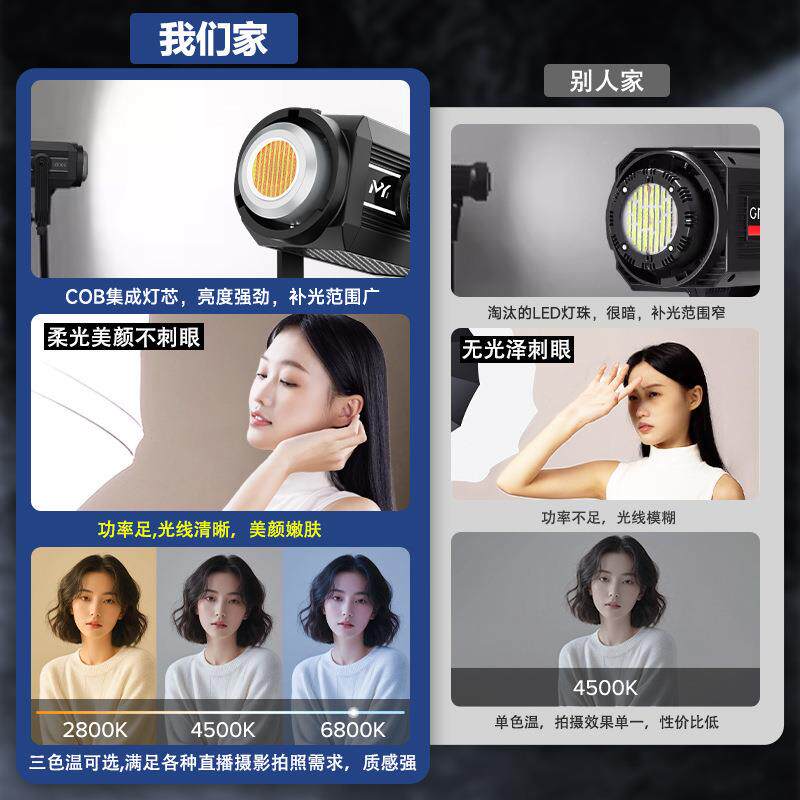 📚 300W直播补光灯 直播间拍摄美颜柔光灯深抛影棚灯专用灯双色温