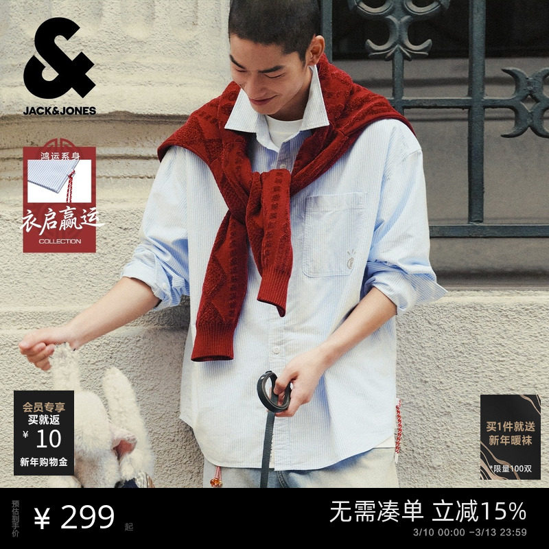 📚 【衣启赢运】杰克琼斯衬衫男新款日系宽松合身棉质条纹上衣男装
