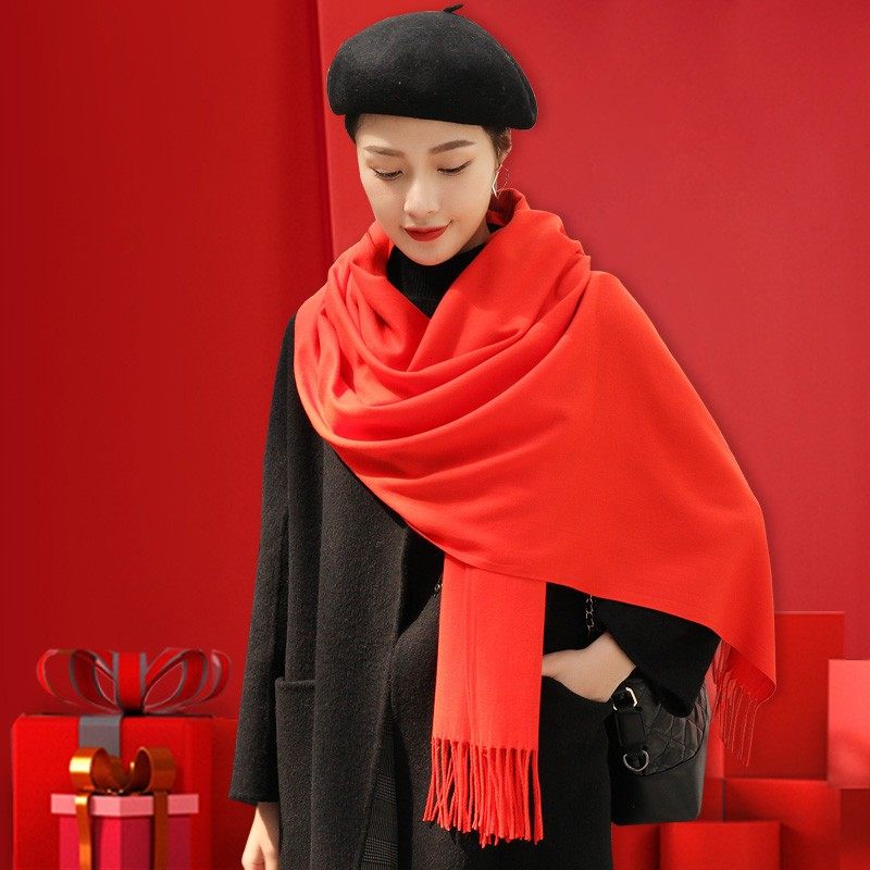 📚 韩版女秋冬季新款纯色粉色保暖长款围巾薄款大P规格办公室披肩两