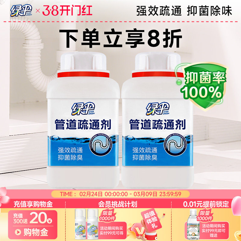 📚 绿伞管道疏通剂2瓶下水道强效溶解剂疏通厨房下水道堵塞溶解剂