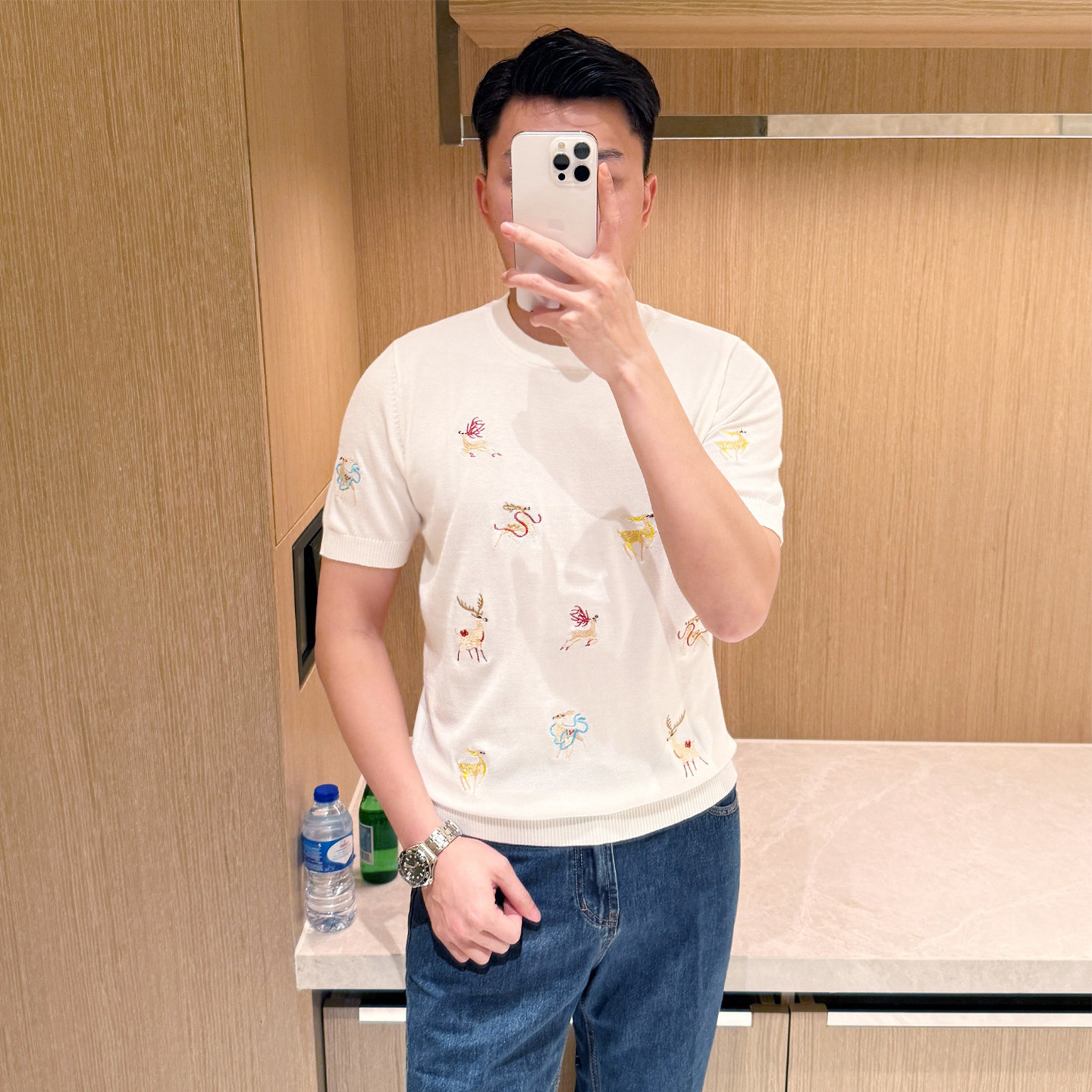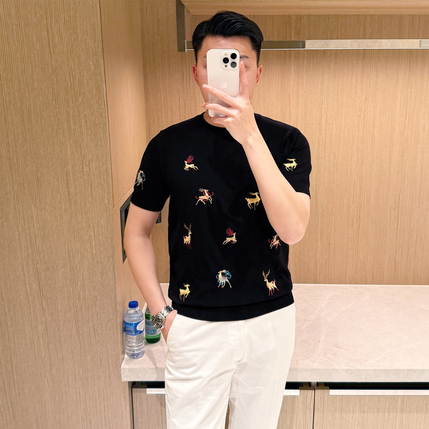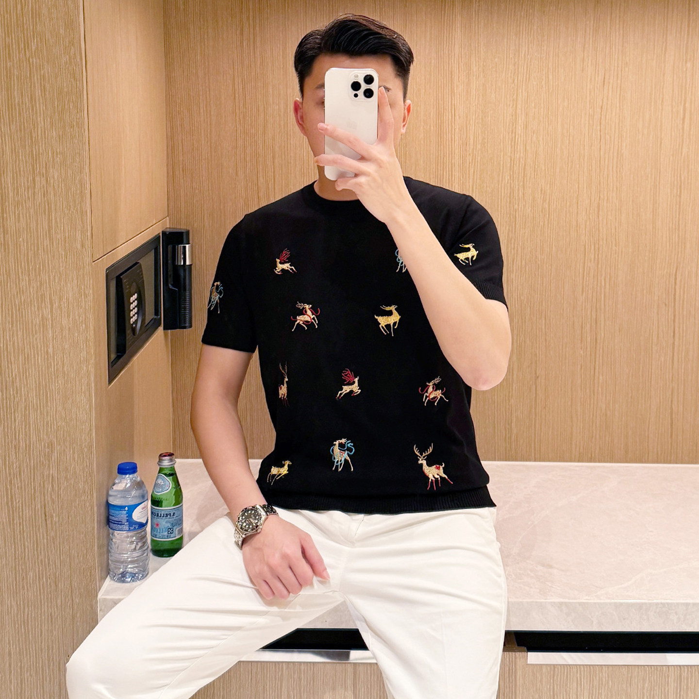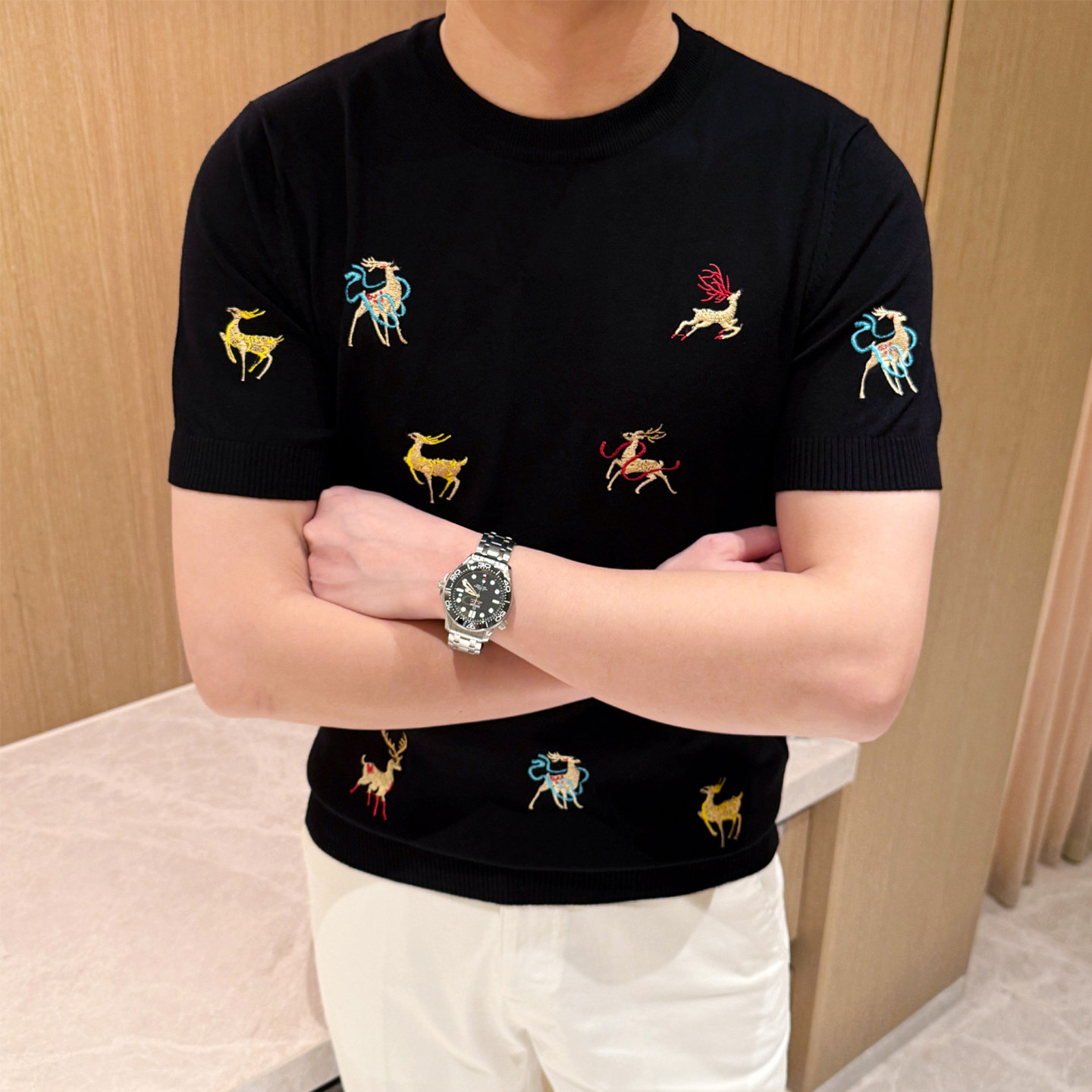 📚 夏季时尚修身男士短袖t恤2026新款 高级感短袖男款刺绣针织衫上衣