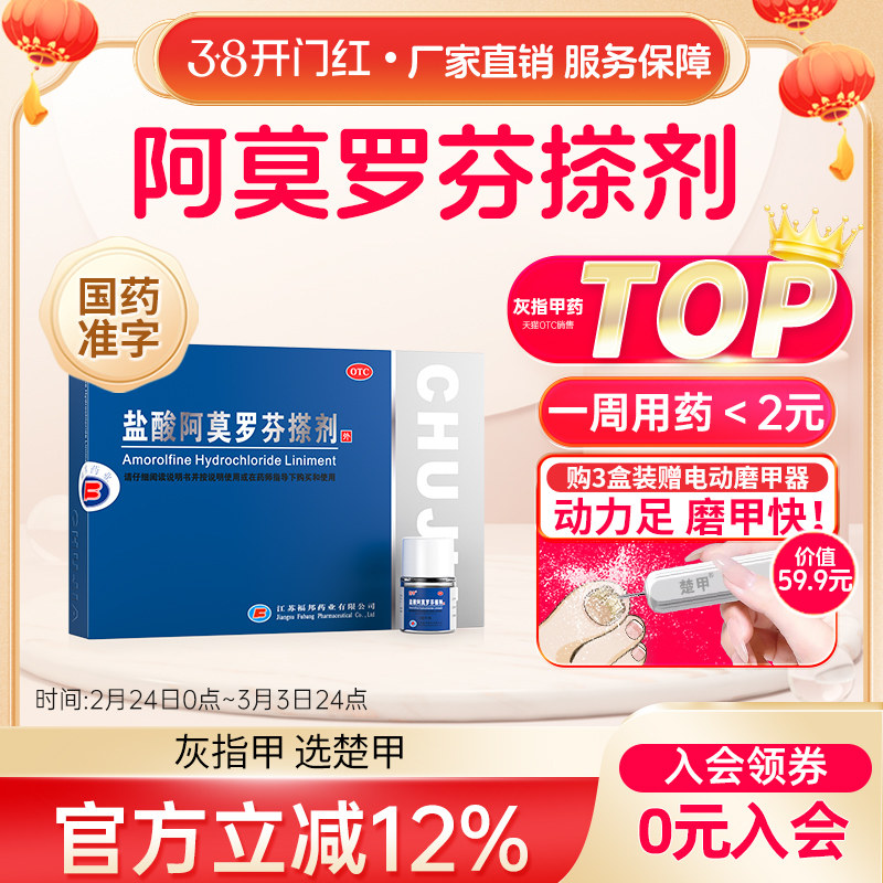 📚 楚甲盐酸阿莫罗芬搽剂2ml灰指甲专用药旗舰正品特效阿莫罗芬搽剂