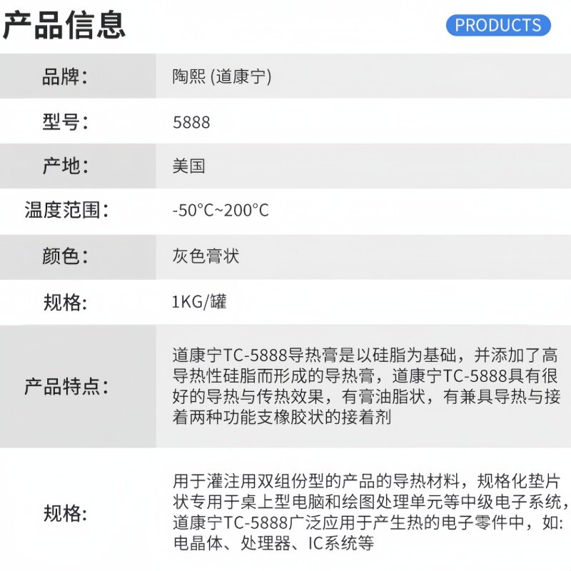 📚 进口陶熙TC-5888导热硅脂电脑CPU处理器风扇显卡散热高导热硅脂