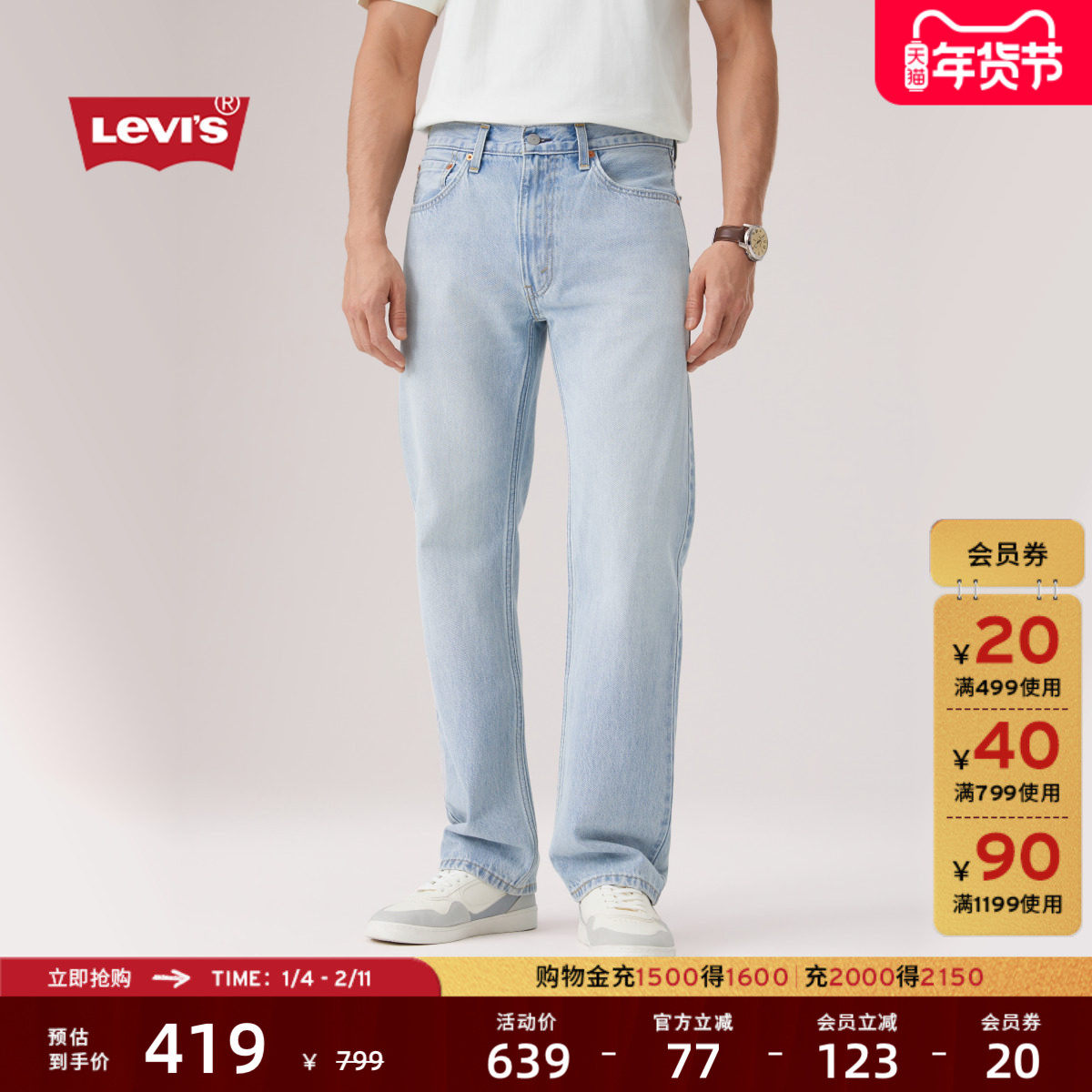 📚 Levi's李维斯26年春夏新款男士美式复古轻通勤555宽松直筒牛仔裤