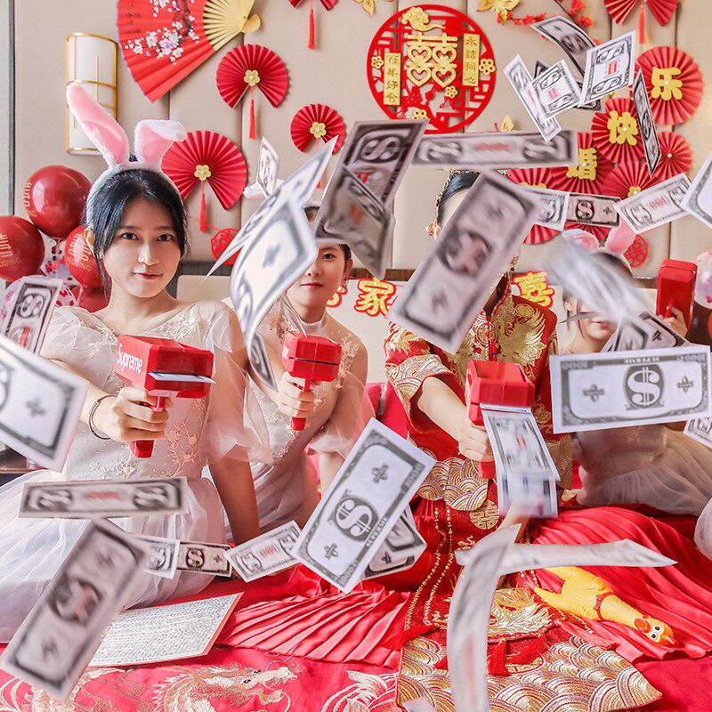 📚 接亲游戏钞票撒钱机器喷钱枪吐钞射钱网红喷钱机玩具婚礼整蛊道具