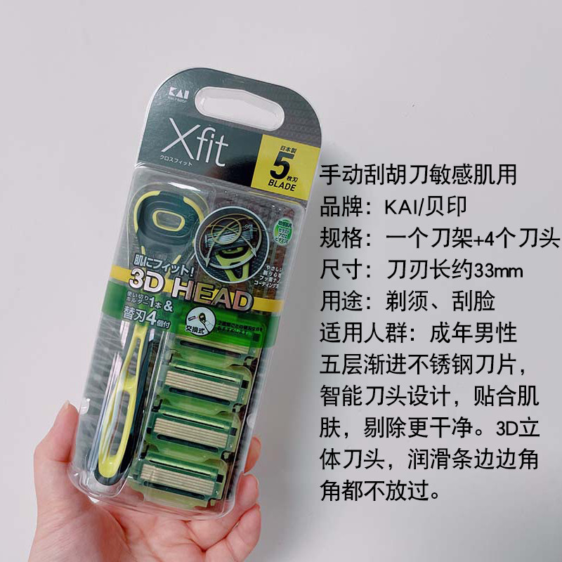 📚 日本进口KAI贝印男士敏感肌五层刀刃手动剃须刀刮胡刮毛刀架刀头