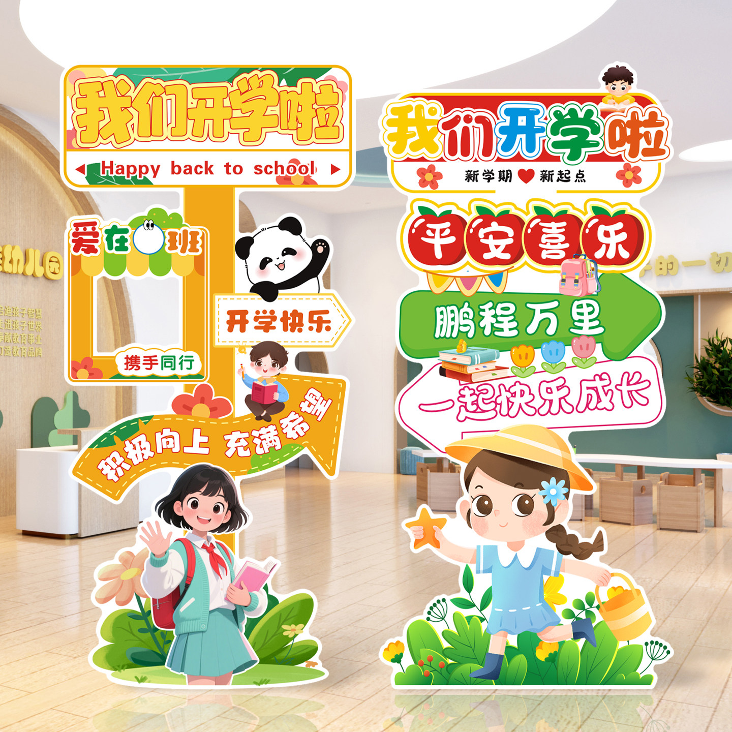 📚 开学迎宾牌学校小学幼儿园新学期迎新典礼场景打卡布置装饰立牌教室班级门口可爱卡通仪式感氛围kt板立柱定制