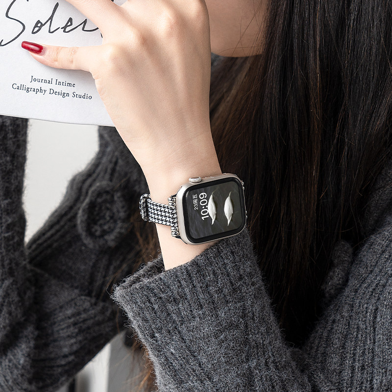 📚 适用iwatch11苹果11代手表applewatch9表带S8帆布S6尼龙SE高级S10千鸟格6夏季5创意4新款41运动45智能watchs