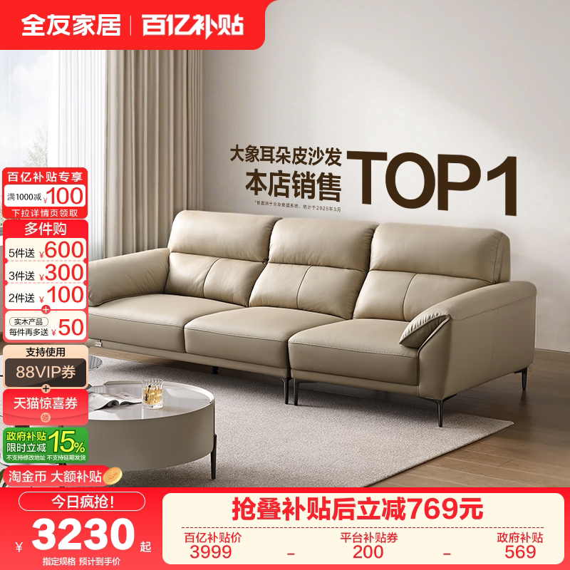 全友真皮沙发家居大象补贴