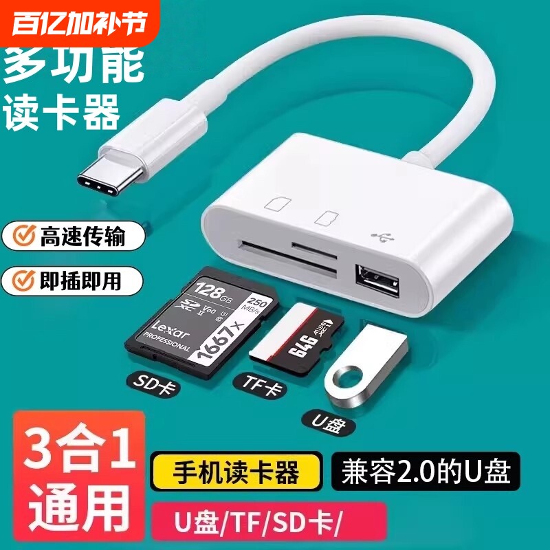 📚 三合一读卡器sd卡适用华为手机索尼佳能康相机内存卡OTG转换器typec直转TF卡记录仪usb口2.0高速传输读取渲涯