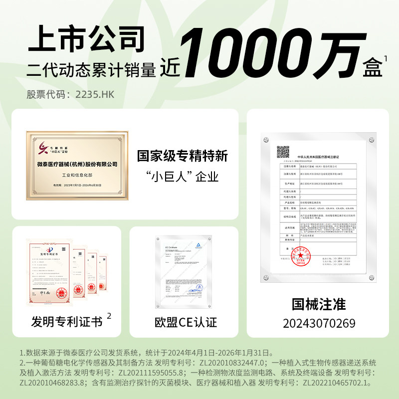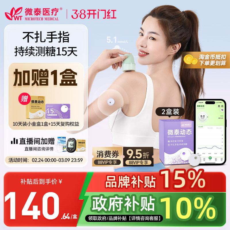 📚 微泰动态血糖仪二代家用24小时动态监测仪测血糖血糖仪器免扎手指