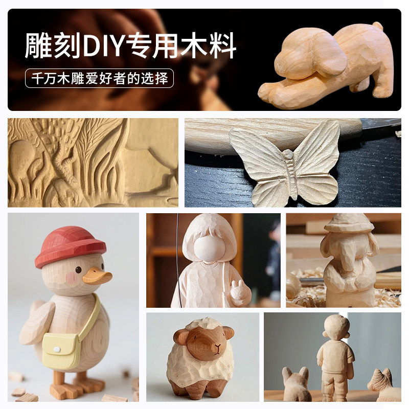 📚 椴木轻木雕刻木料纯手工DIY新手木雕木方原实木块定制软木方块