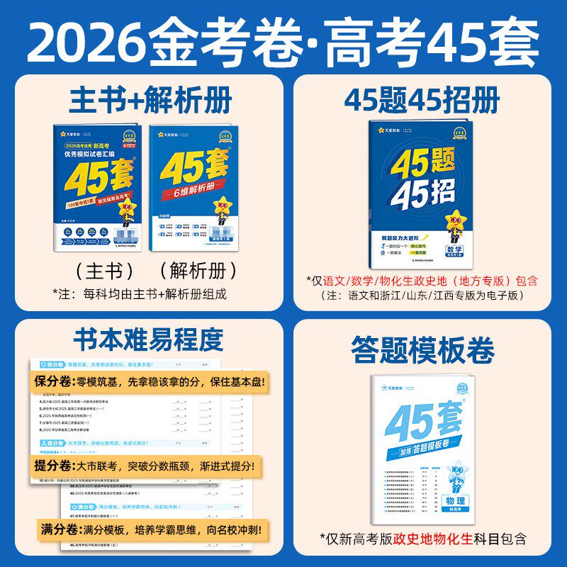 📚 金考卷2026新高考45套模拟试卷数学英语语文物理化学生物政治历史地理综合复习新高考真题卷试题必刷题高中一二轮冲刺资料天星教育