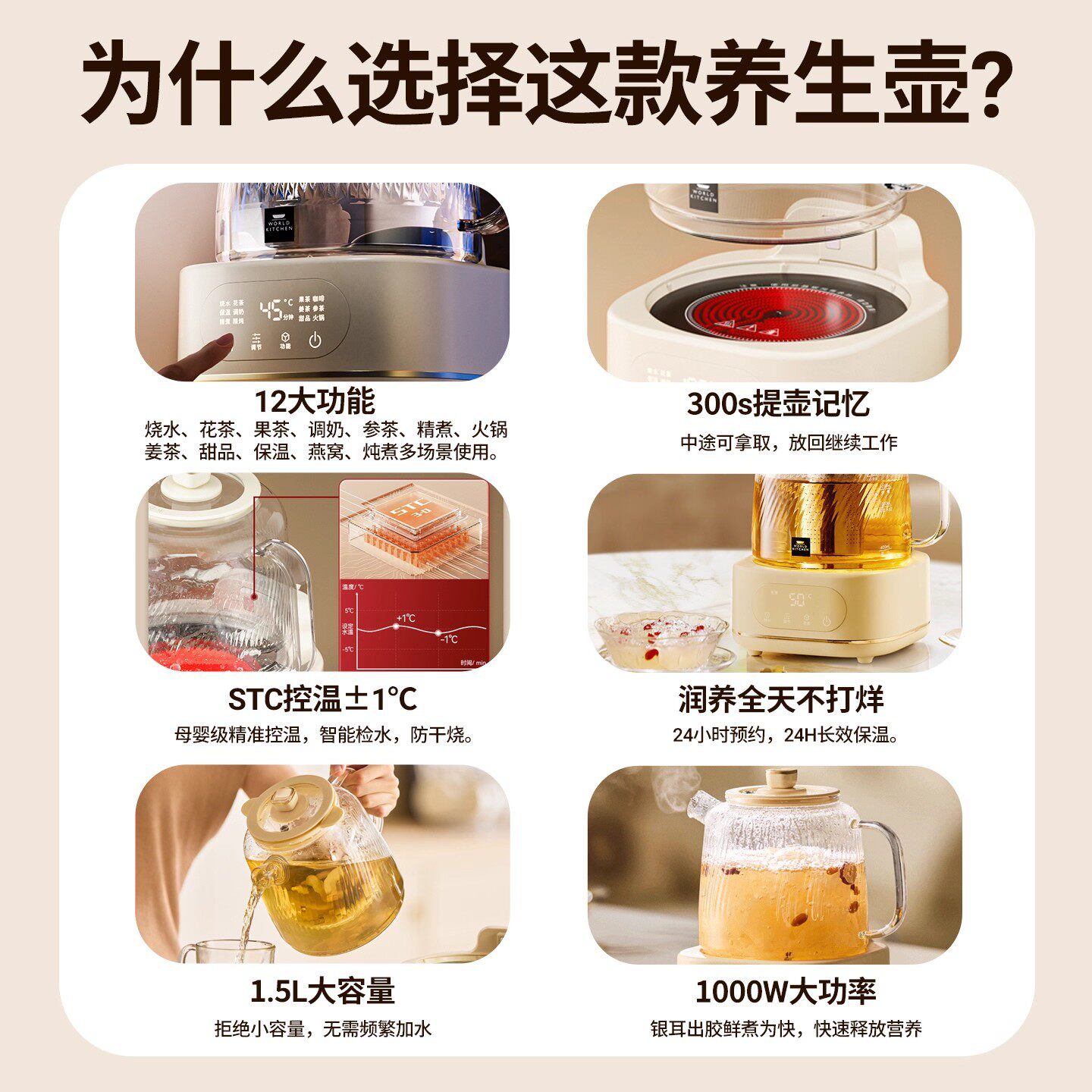 📚 康宁餐具养生壶家用花茶壶新款炖煮一体多功能全玻璃纯恒温烧水壶