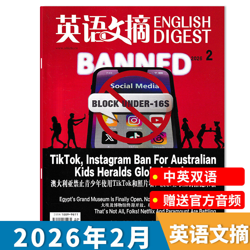 📚 【单期可选】英语文摘杂志2026年3月大学生四六级考试雅思托福参考教辅中英文版双语新闻周刊扫码听音频书期刊2023年全年订阅