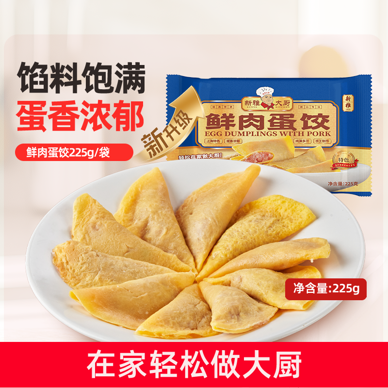 📚 上海新雅鲜肉蛋饺225g半成品火锅三鲜汤速冻猪肉蛋饺冷冻水煮蛋饺