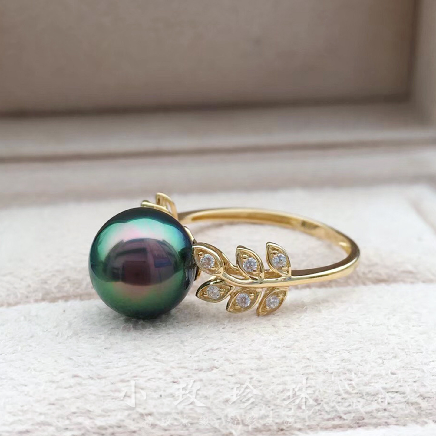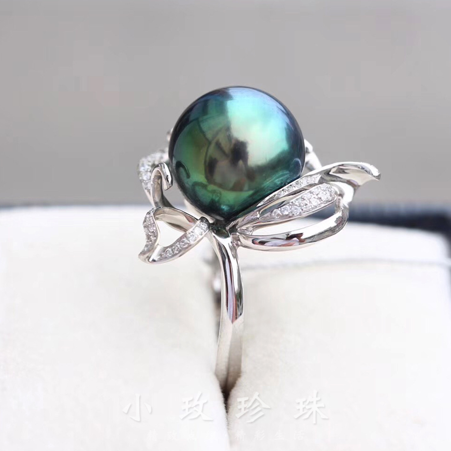 📚 孤品清仓纯银大溪地黑珍珠戒指18K金女结婚纪念南洋天然海水珠戒